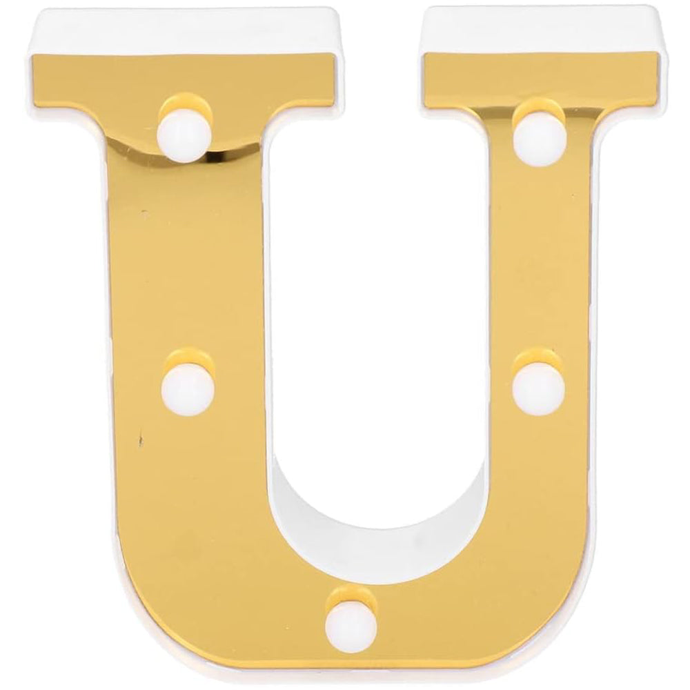 Our LED alphabet letter light U warm white gold plastic decorative lamp battery operated 16cm is a stylish and eye-catching lighting piece designed to enhance home décor, parties, weddings, and special occasions with a warm and romantic glow. Crafted from lightweight plastic with a premium gold finish, this decorative letter lamp emits a soft warm white light, creating an inviting ambience ideal for personalised displays, event styling, or everyday interior decoration. Its compact size and battery-powered operation allow flexible placement, making it perfect for spelling names, initials, or meaningful words in any setting.