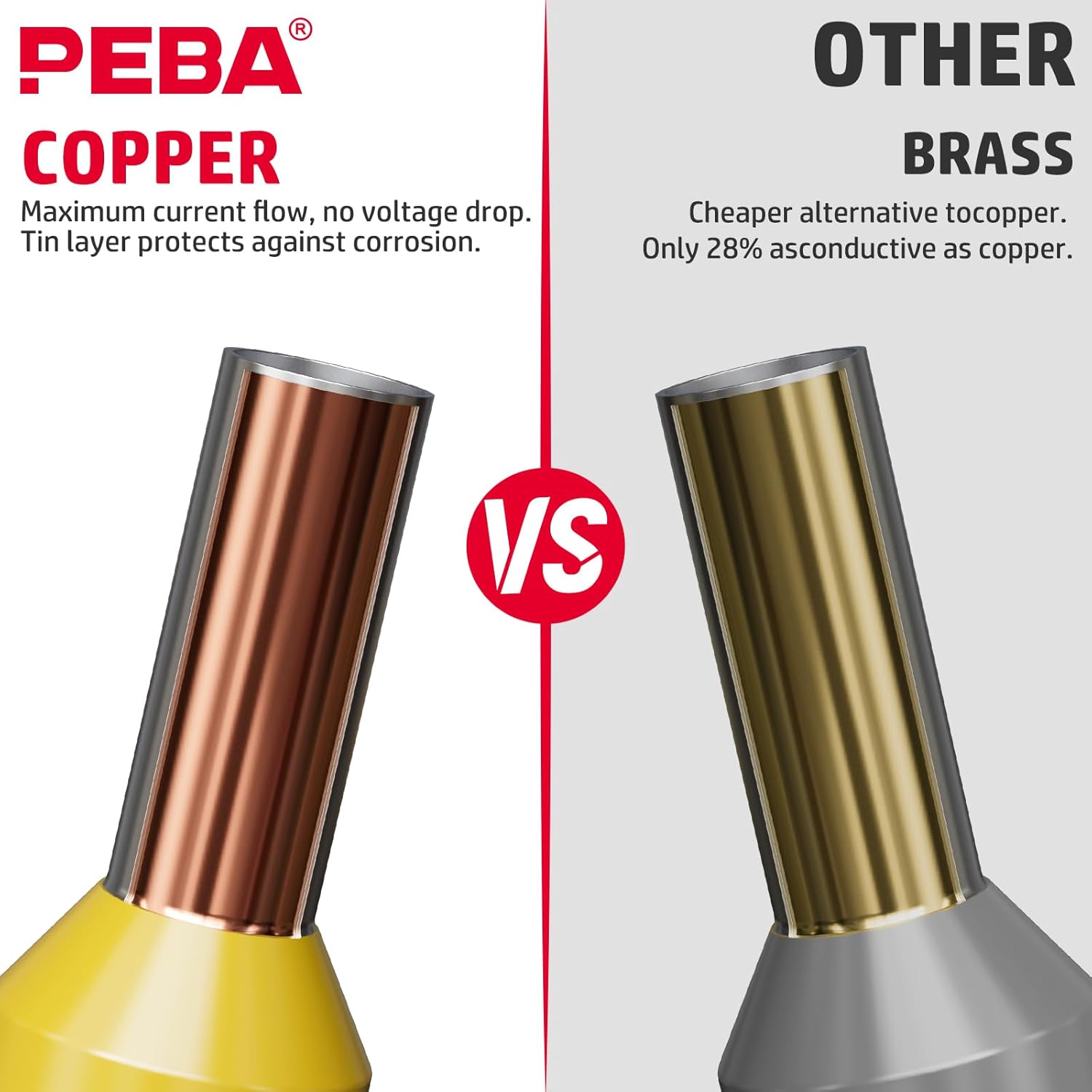 - Tinned purple copper ferrules for corrosion resistance and conductivity
