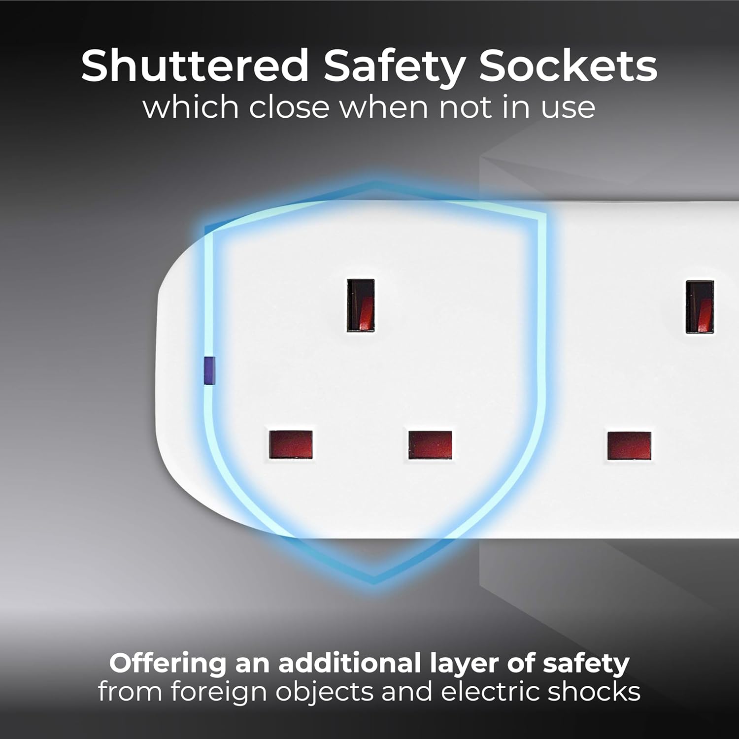- Two safety shuttered sockets for family safety
