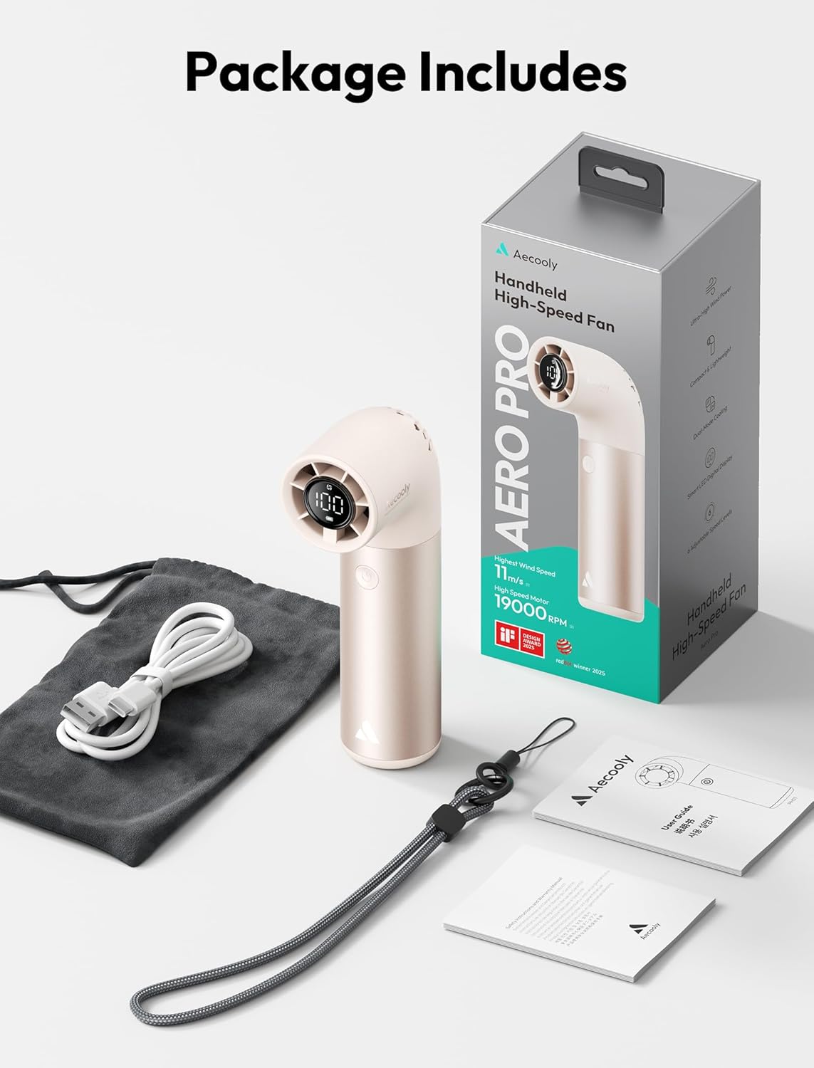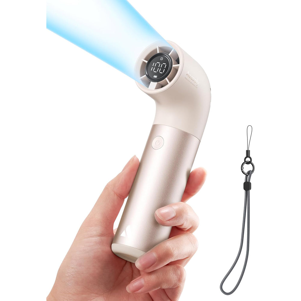 Our portable turbo handheld fan with 19,000 RPM high-speed airflow, 6-speed dual modes, smart LED digital display, rechargeable pocket design, and aerograde aluminum casing provides rapid personal cooling for travel, outdoor activities, office use, and beach days while offering ergonomic r-shaped handling, powerful turbine brushless motor performance, and efficient heat dissipation for consistent comfort.