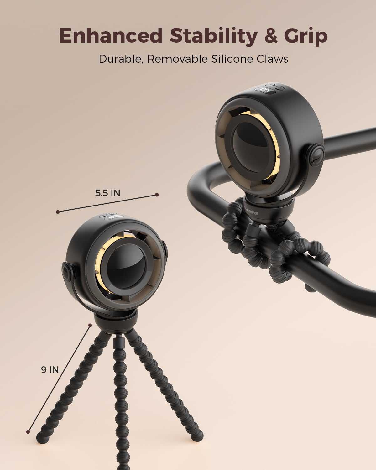 Our portable 360° rotating pram fan features safe clip-on design, 4-speed quiet cooling, LED display, night light, and 4000mAh USB-C rechargeable battery for strollers, buggies, car seats, and cribs. Ideal for travel, outdoor walks, or bedtime, this fan provides gentle airflow for infants or powerful cooling for adults, operates up to 16 hours with fast 4-hour charging, and includes low-battery alerts to ensure uninterrupted comfort. Its whisper-quiet performance with dimmable night light makes it perfect for sleep routines without disturbing babies.