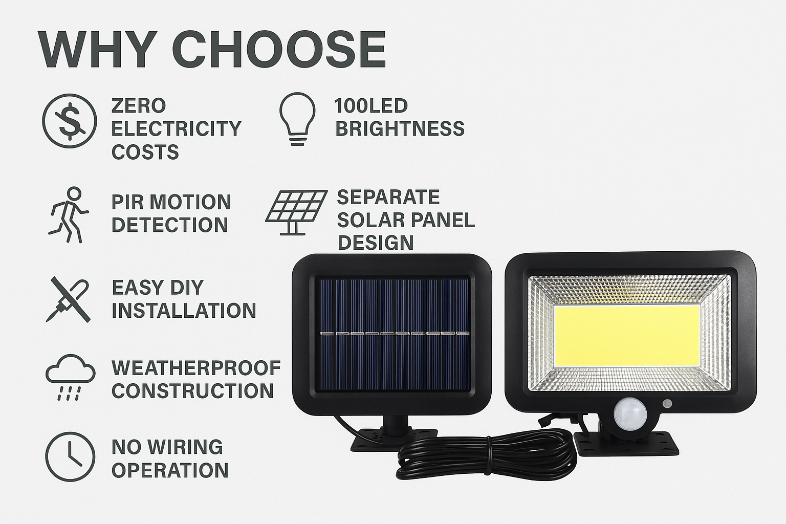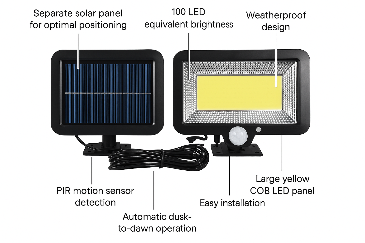 Our 100 LED Solar Powered PIR Motion Sensor Garden Wall Light is a powerful, energy-efficient solution for outdoor security and lighting in the UK. Equipped with a wide-angle lighting design and intelligent motion detection, this solar floodlight provides bright illumination exactly when needed. With IP65 waterproof protection and no mains wiring required, it’s perfect for gardens, driveways, patios, and outdoor pathways—charging by day and protecting by night.