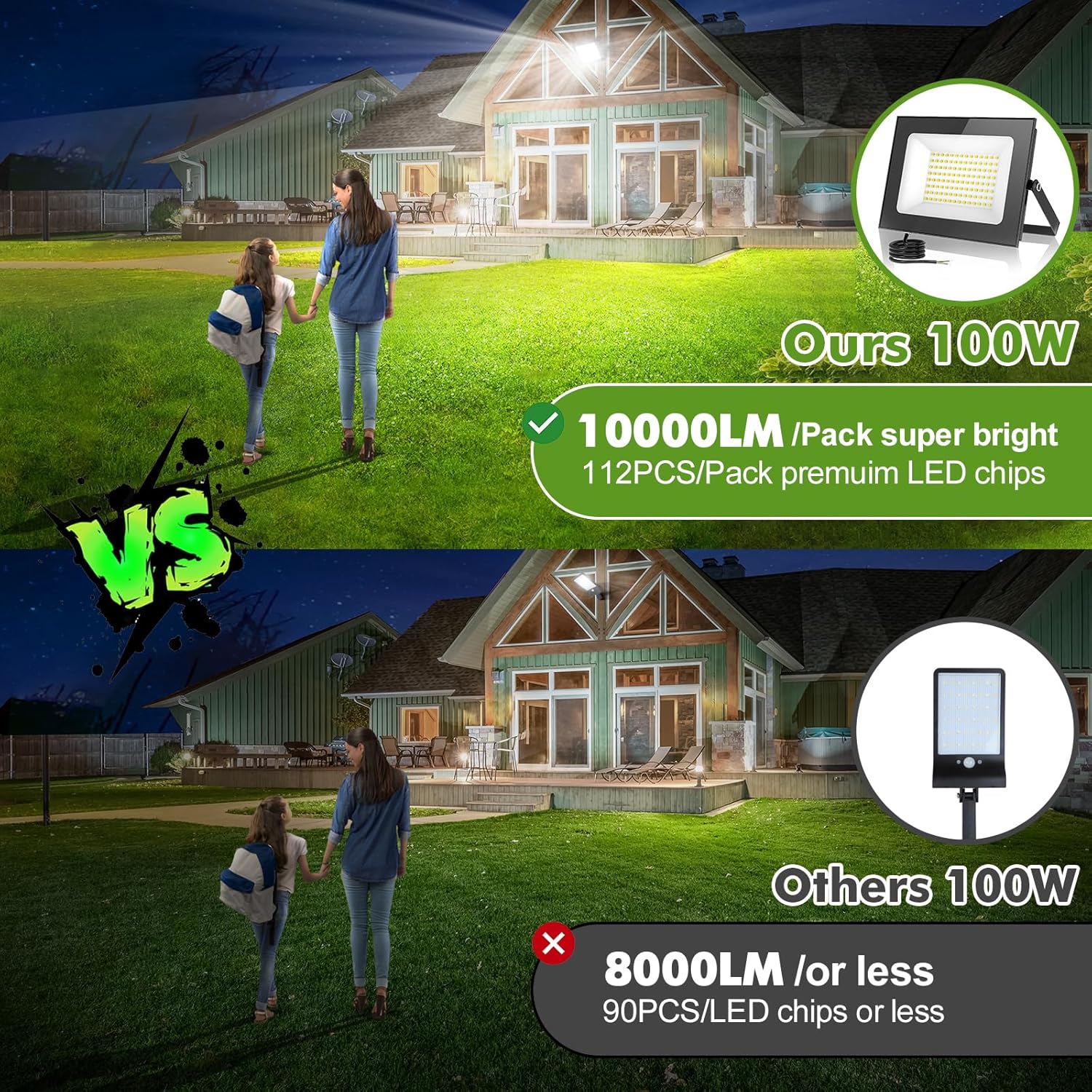 Illuminate large outdoor spaces with the 100W LED Floodlight 2 Pack, designed to deliver powerful brightness and energy efficiency. Each floodlight is equipped with 105 high-performance 2835 SMD LEDs, producing an impressive 10,000 lumens of cool white 6500K light. Built with a durable high-pressure cast aluminium housing, tempered glass cover, and IP65 waterproof rating, these LED floodlights are made to withstand rain, snow, heat, and dust, ensuring reliable performance all year round.