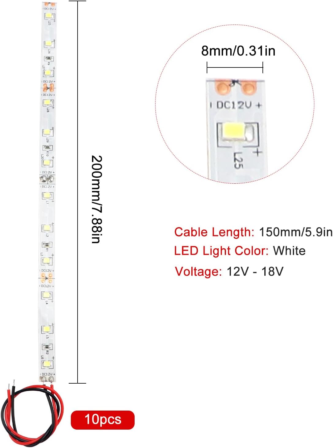 Illuminate your projects with this 10PCS 200mm Prewired LED Strip Light Kit, designed with high-efficiency 2335 SMD LEDs for bright, reliable, and energy-saving performance. Operating on 12V-18V DC, these slim and flexible light strips are ideal for both hobbyists and professionals. Each strip measures just 8mm wide, making it perfect for tight spaces and curved surfaces, while the prewired pigtail ends ensure simple plug-and-play installation.