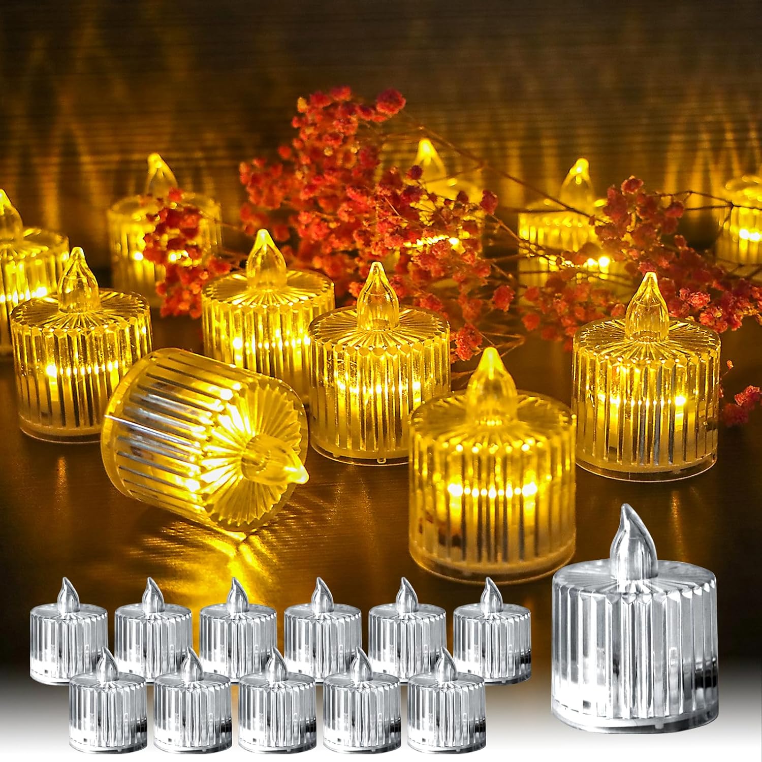 Soft glow mimics real tea light flames for ambient lighting.