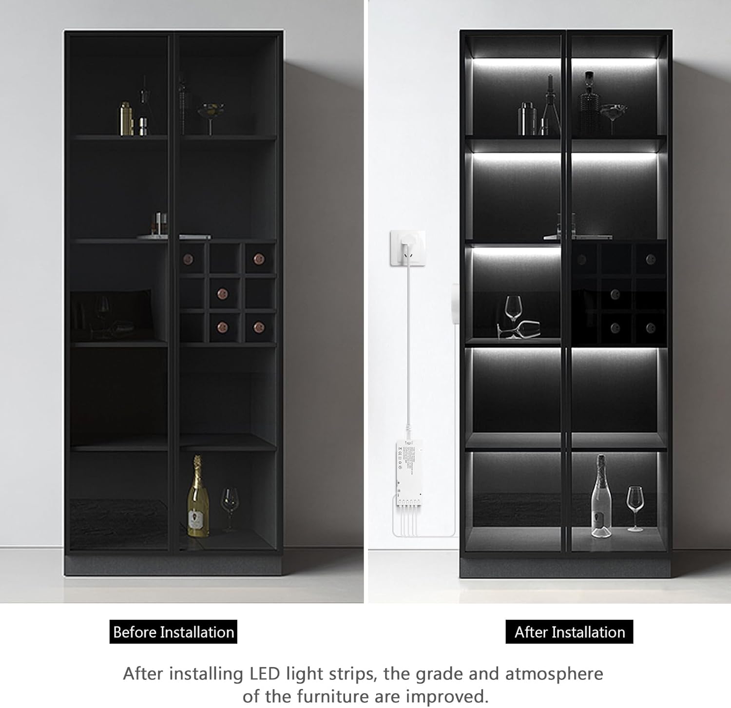Illuminate your cabinets, showcases, and kitchens with the 12V COB LED Strip Kit, designed for modern and efficient lighting. Featuring 6 high-density COB LED strips (320 LEDs per meter), this kit delivers bright, even illumination with no dark spots. The touch and hand sweep dimmer switch allows effortless control—simply wave your hand to turn lights on/off or hold for smooth dimming.