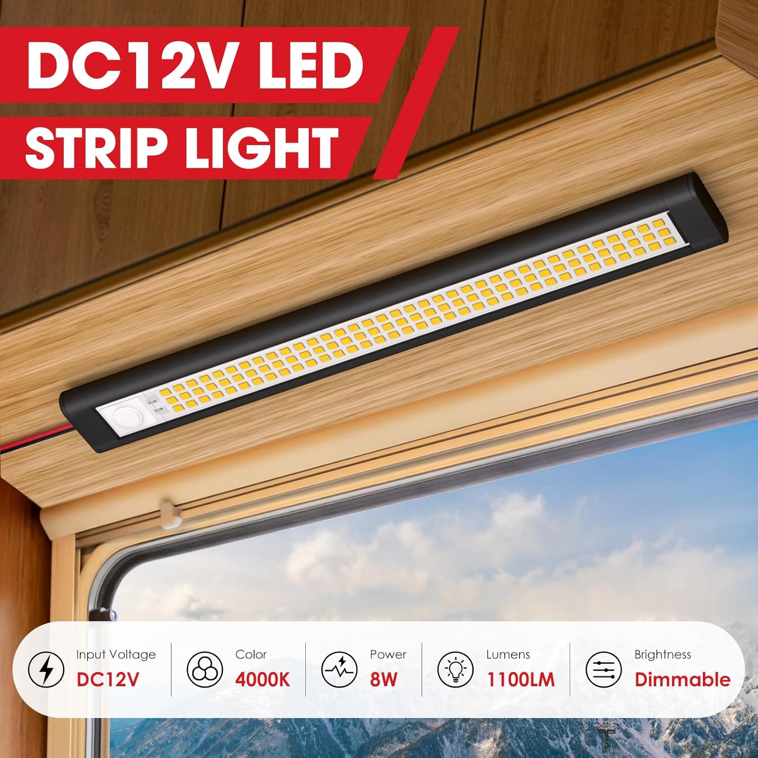 Upgrade your enclosed trailer, RV, van, or shed with this 12V LED light strip kit, designed for efficient illumination in compact spaces. Each fixture features 108 premium LED beads that deliver 1100 lumens of bright output while consuming just 9W of power, providing a perfect balance of brightness and energy savings.
