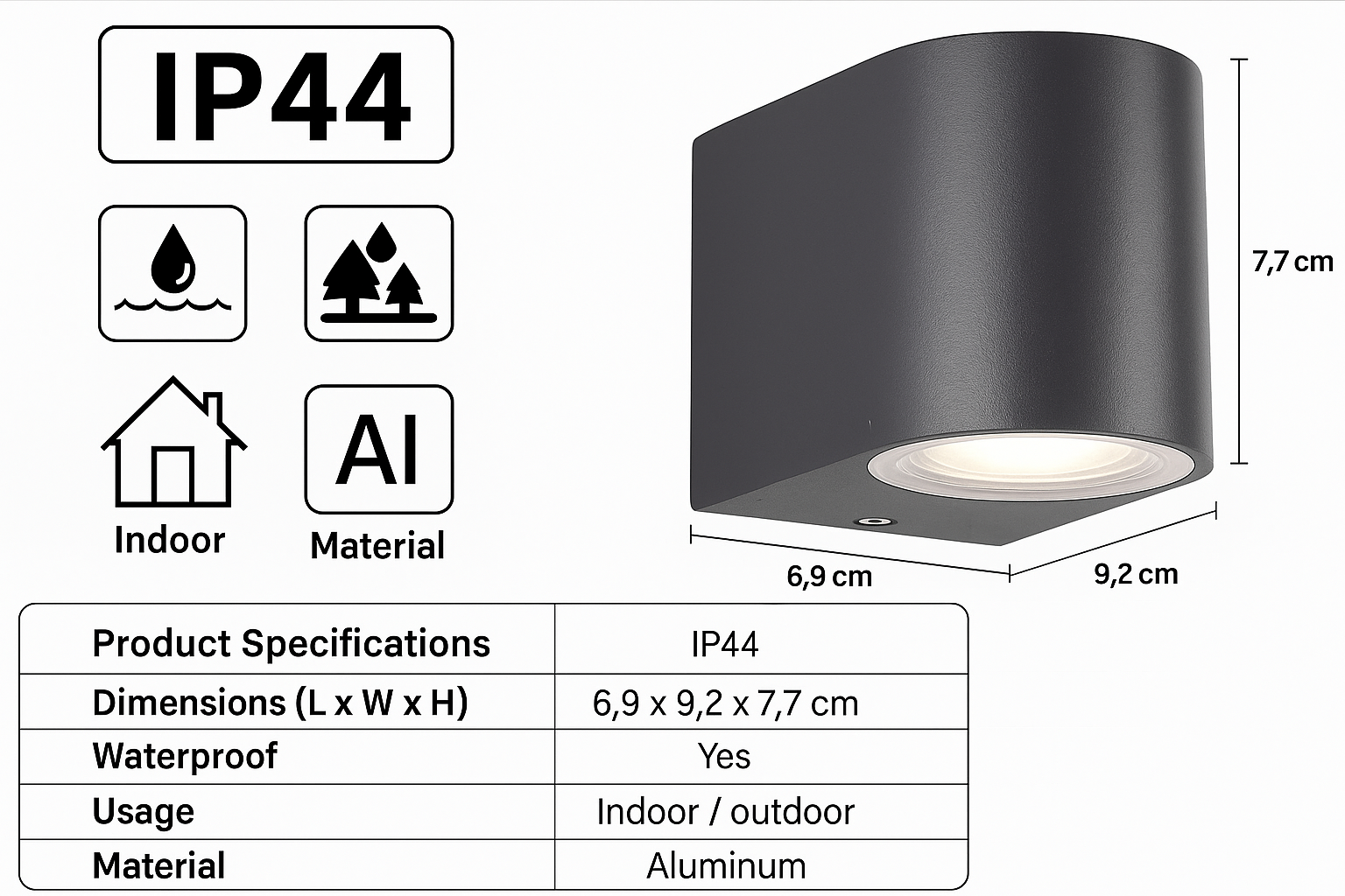 The downward lighting is exactly what we needed for our driveway and entryway — bright enough to provide visibility without blinding. The GU10 bulb fitting is great because I can choose energy-efficient LED bulbs for cost savings. It’s compact, easy to mount with the supplied hardware, and versatile enough to use around patios, fences, or garages. Definitely a high-quality, long-lasting outdoor light.