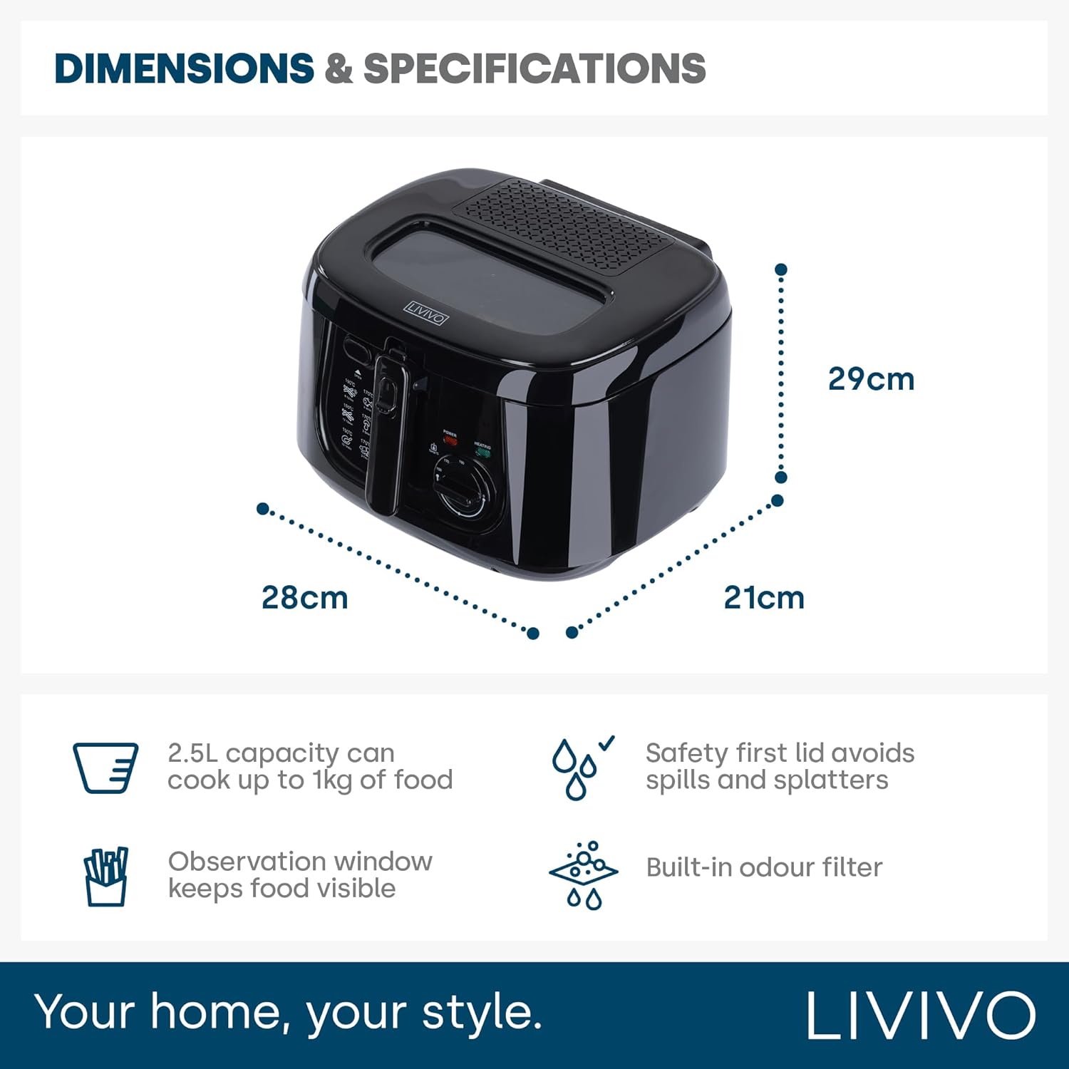 • 2.5L Oil Capacity – Perfect for family meals and batch frying without constant oil changes.