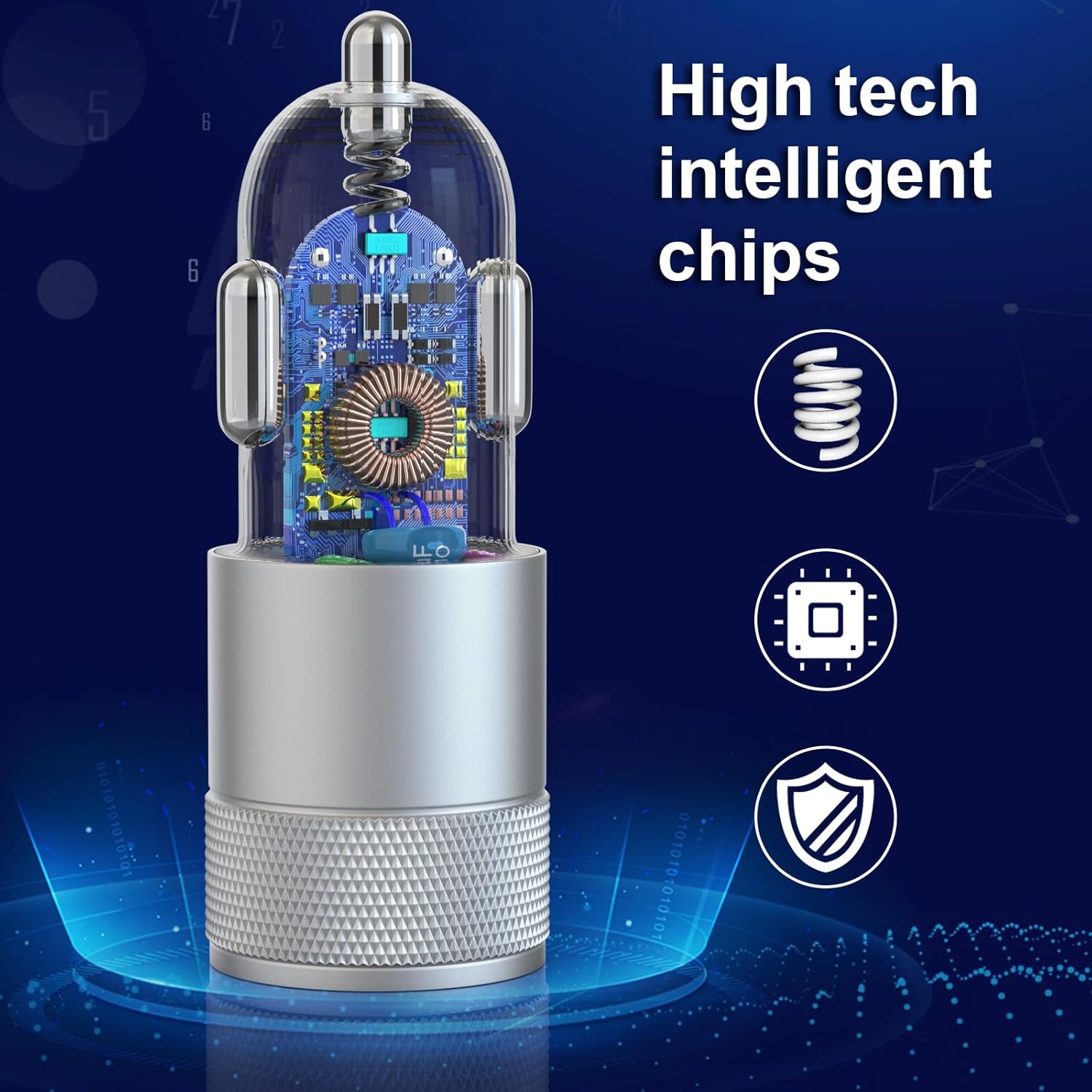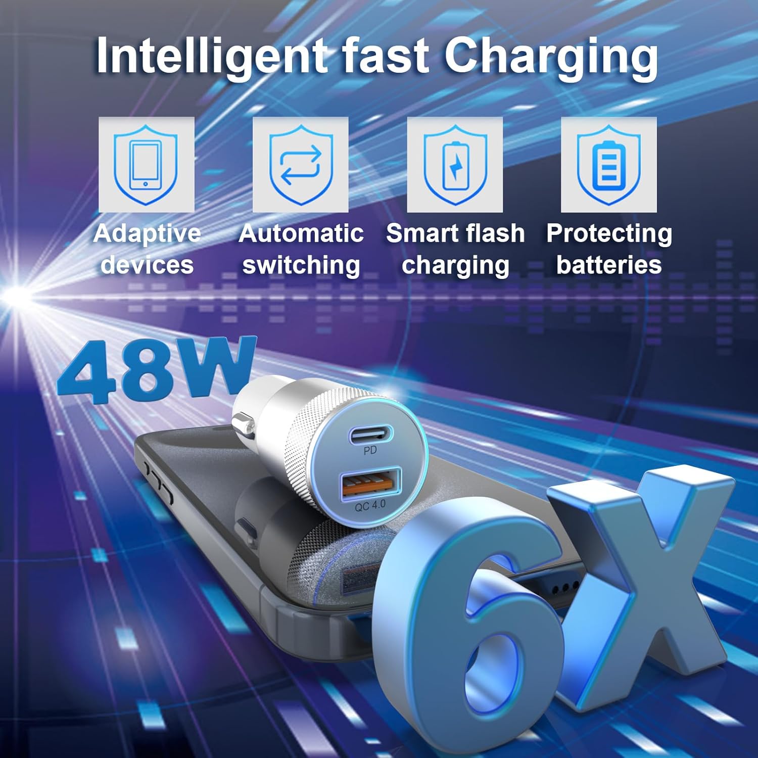 Our 48W Dual USB Car Charger Adapter delivers fast, efficient, and safe charging for all your devices on the go. Equipped with PD 30W USB-C and QC 18W USB-A ports, it supports rapid charging for iPhone, Samsung, iPad, and other USB-C devices simultaneously. Built with an advanced MFi-certified smart chipset and high-grade flame-retardant PC materials, it ensures stable performance and prevents overheating. Its compact, thumb-sized design fits snugly into any car cigarette lighter socket, keeping your car interior neat and organized while providing dependable power for your devices.