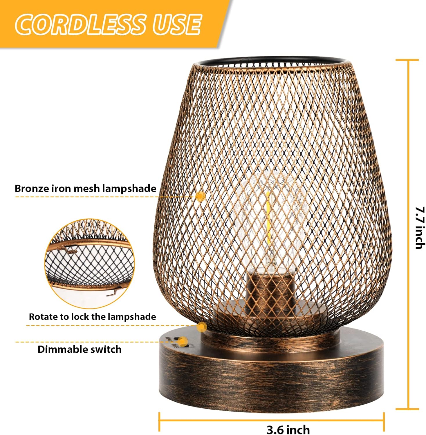 2 Pack Rechargeable Cordless Table Lamp Battery Operated Metal Bronze