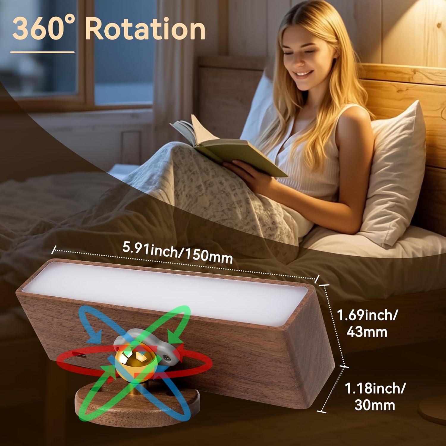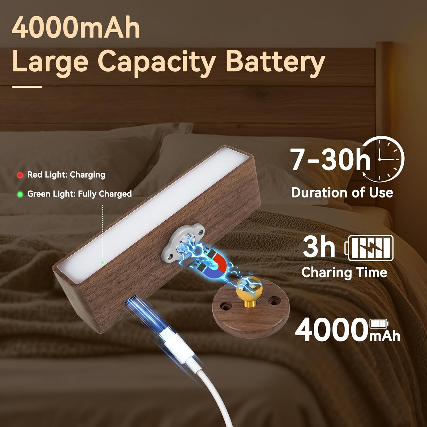 Our 2 Pack Rechargeable Magnetic Wall Lights offer versatile and portable lighting solutions for indoor spaces. Equipped with a 360° rotatable magnetic base, these battery-powered wall sconces can be adjusted to any angle or removed from the base for use as a flashlight or emergency light. Each light features a 4000mAh rechargeable battery with fast Type-C charging, providing up to 7 hours of high-brightness illumination and up to 30 hours at low brightness. Stepless dimming and memory function allow you to set the perfect brightness, while 50 energy-saving LED beads deliver wide-angle, soft, non-dazzling light, reducing eye strain. Ideal for bedrooms, living rooms, hallways, staircases, cabinets, or closets, these modern wood-finished wall lights combine functionality and style for any room.