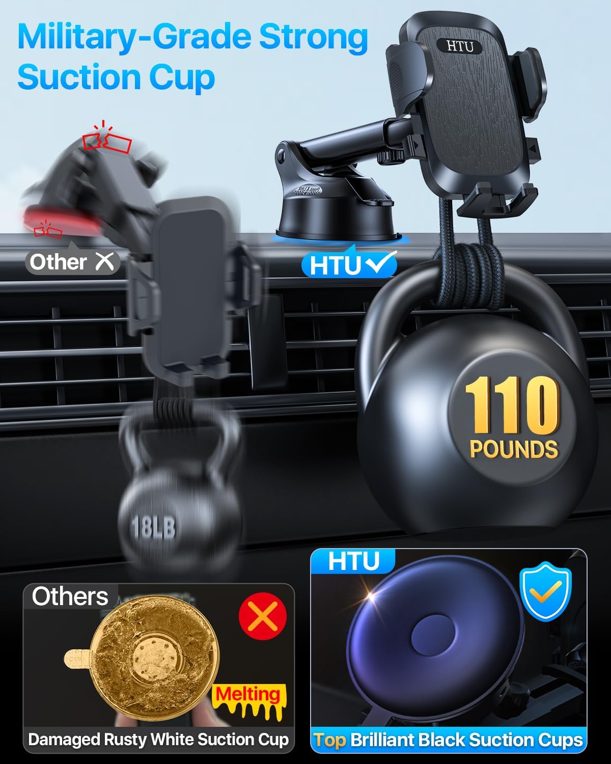 • Enhanced 110LBS suction power with 3-layer nano sticky gel for firm grip.