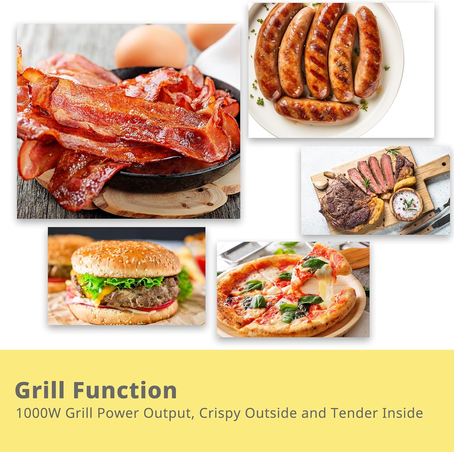 • 1000W grill power with 3 settings, perfect for crisping and browning