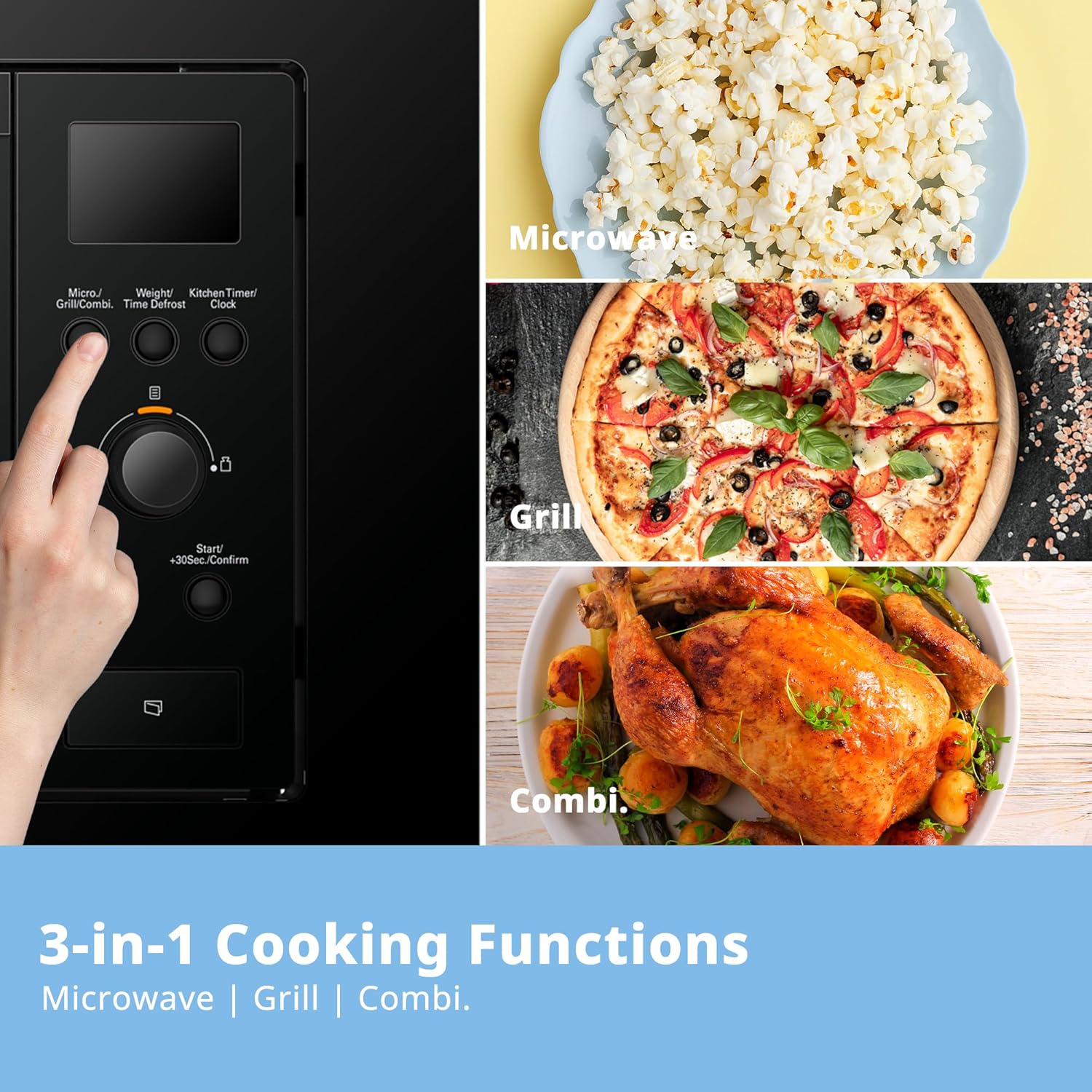 20L Black Built In Grill Microwave with Digital Control, Auto Menu & Defrost