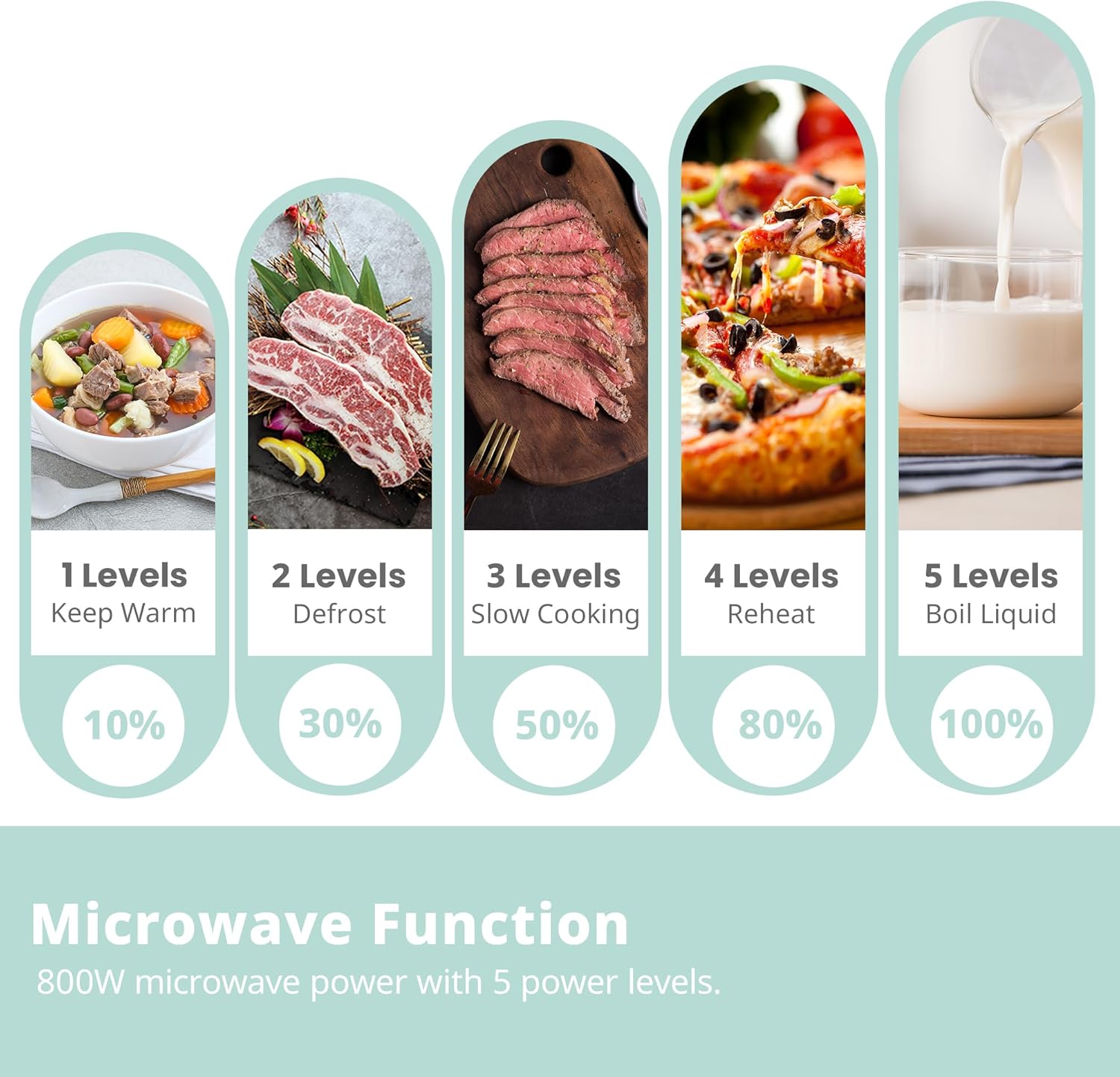 • 800W microwave with 5 adjustable power levels for versatile cooking