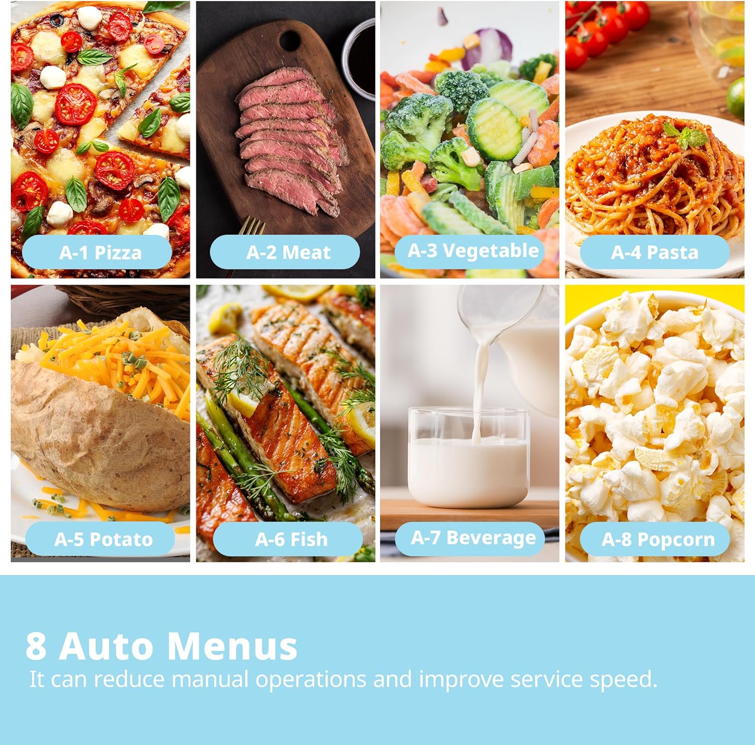 • 8 pre-set auto menus including pizza, pasta, meat, potatoes, fish, and more