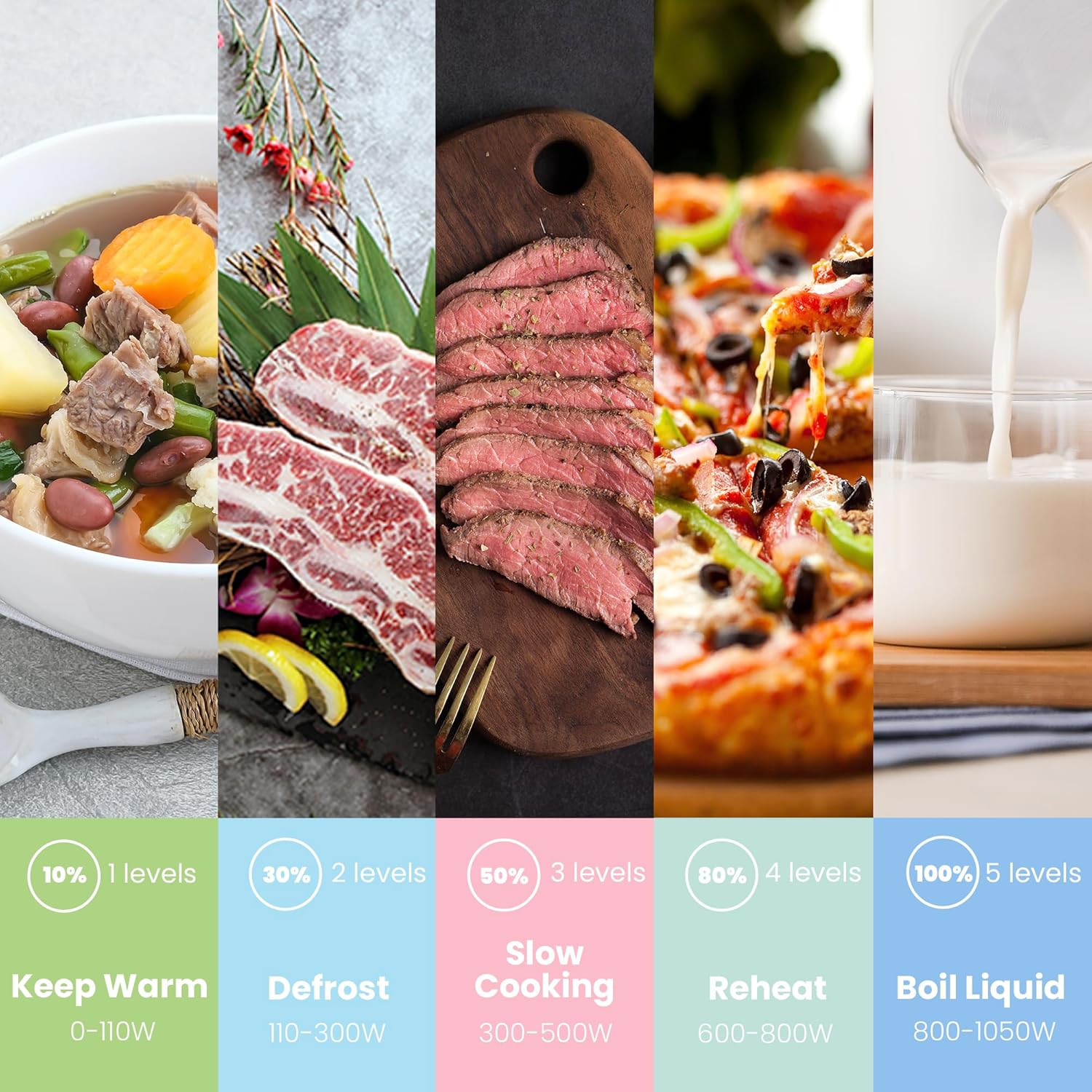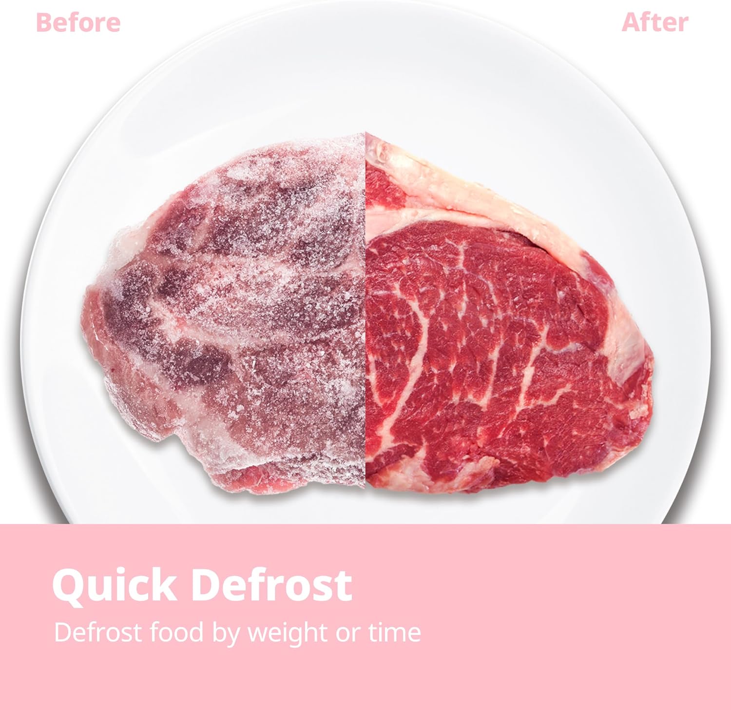 • Quick defrost by weight or time for efficient and safe food thawing