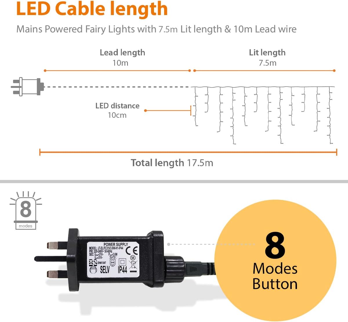 7.5m (24ft) Length – Ideal for decorating roof edges, windows, and fences.
