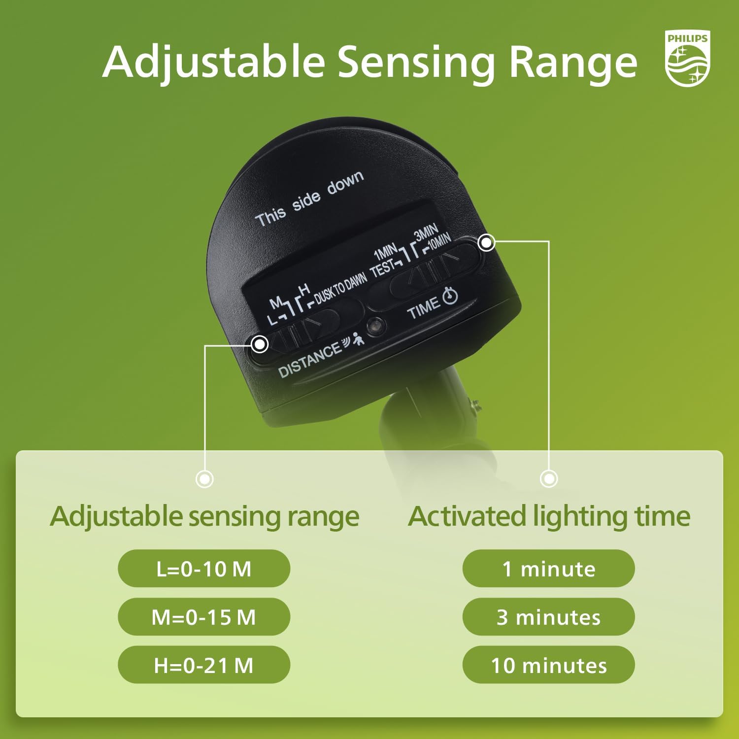 • Adjustable light-on time (1, 3, or 10 minutes)