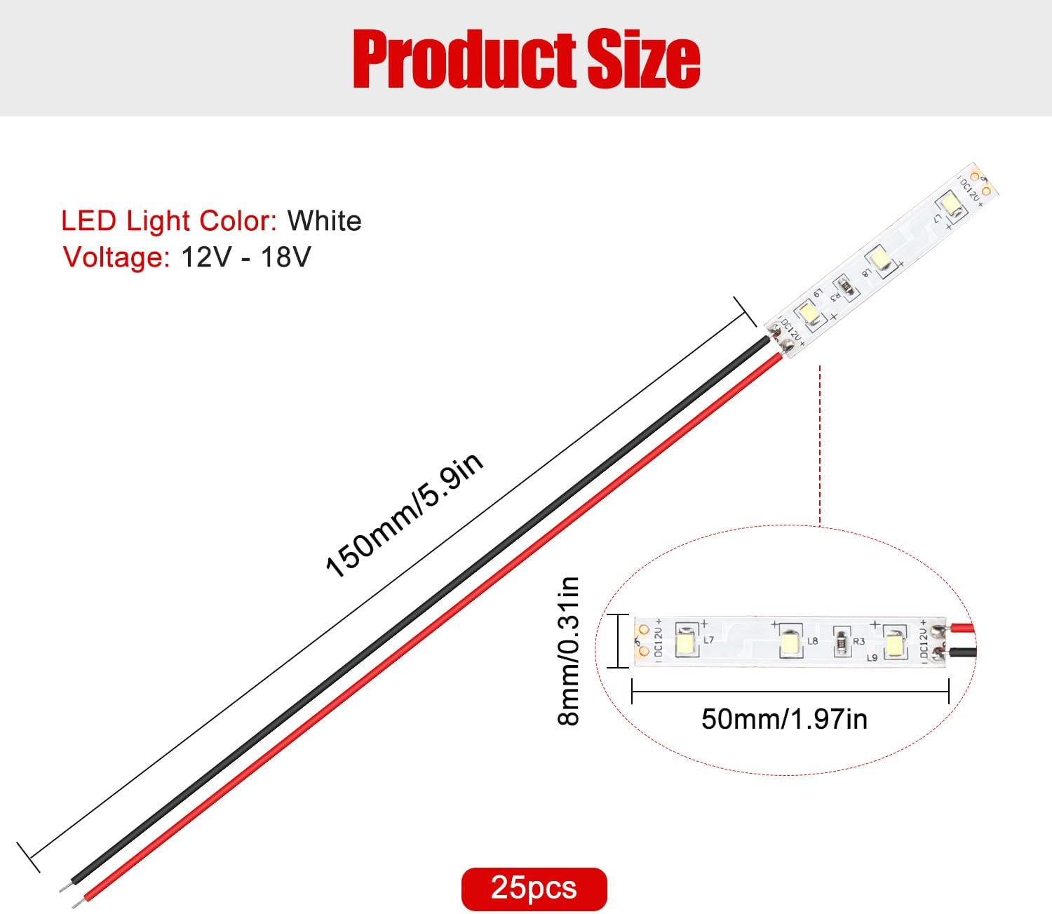 25PCS 50mm Prewired LED Strip 12V-18V White 2335 SMD Lighting Kit