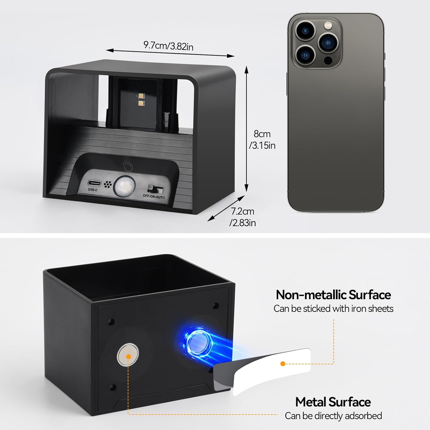 - Magnetic mounting with adhesive option for non-metal surfaces