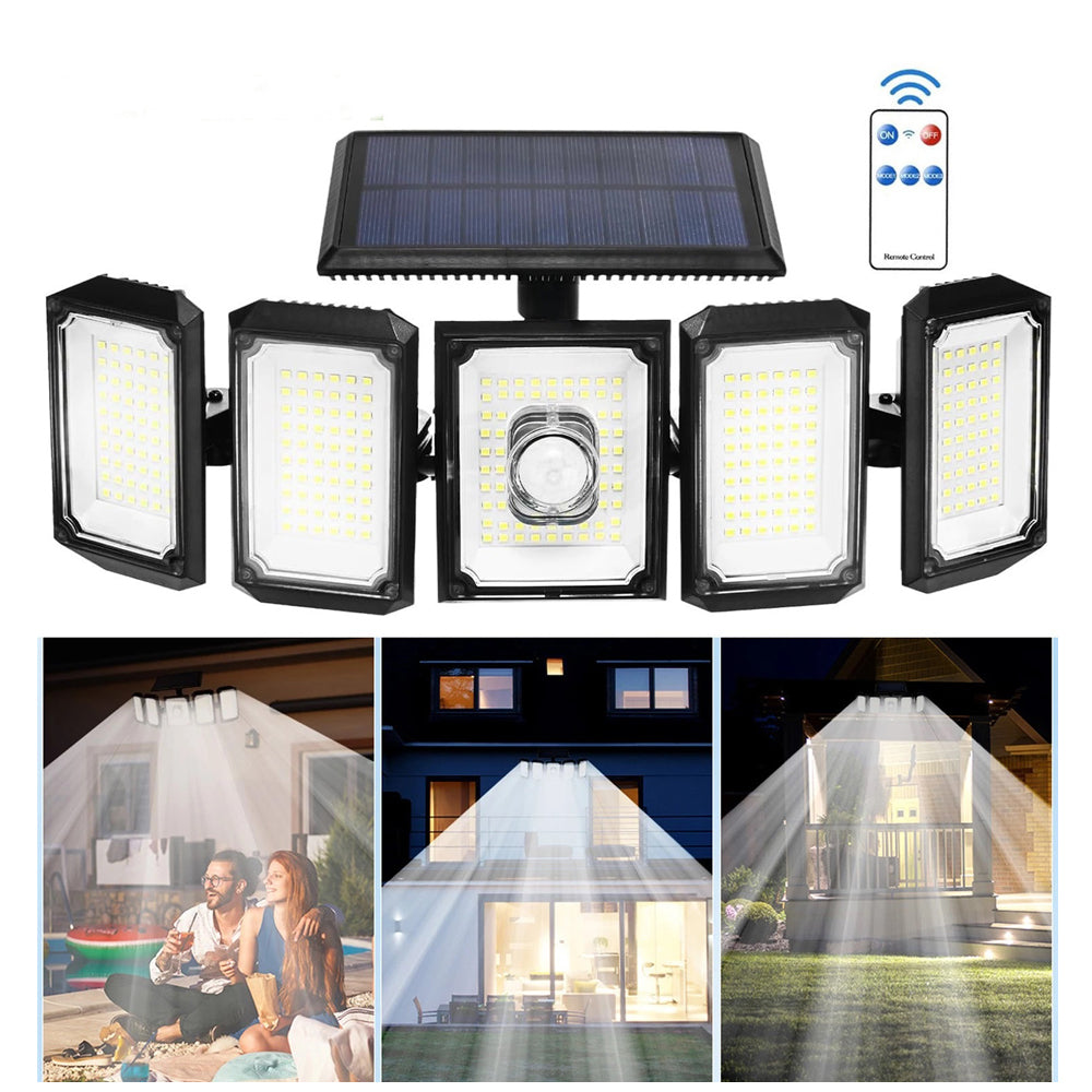 Illuminate your outdoors with this 3/4/5-Head Solar Flood Light with Motion Sensor, designed for reliable performance and security. Featuring super-bright LED lighting, wide-angle illumination, and adjustable heads, this solar-powered lamp provides excellent coverage for gardens, garages, patios, and driveways.