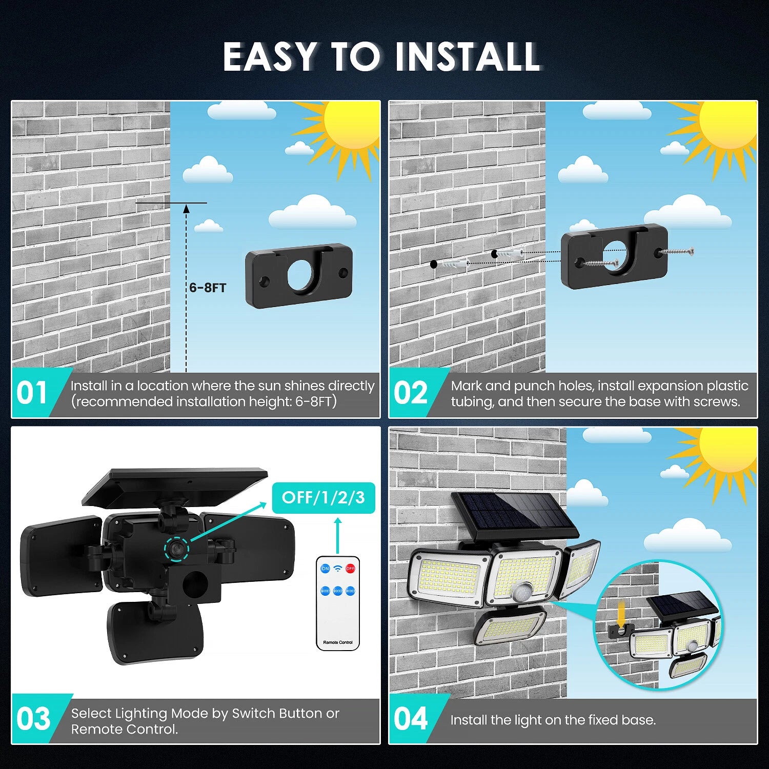 Easy Installation: No wiring or electrician needed—mount it anywhere with screws and let the sun do the rest.