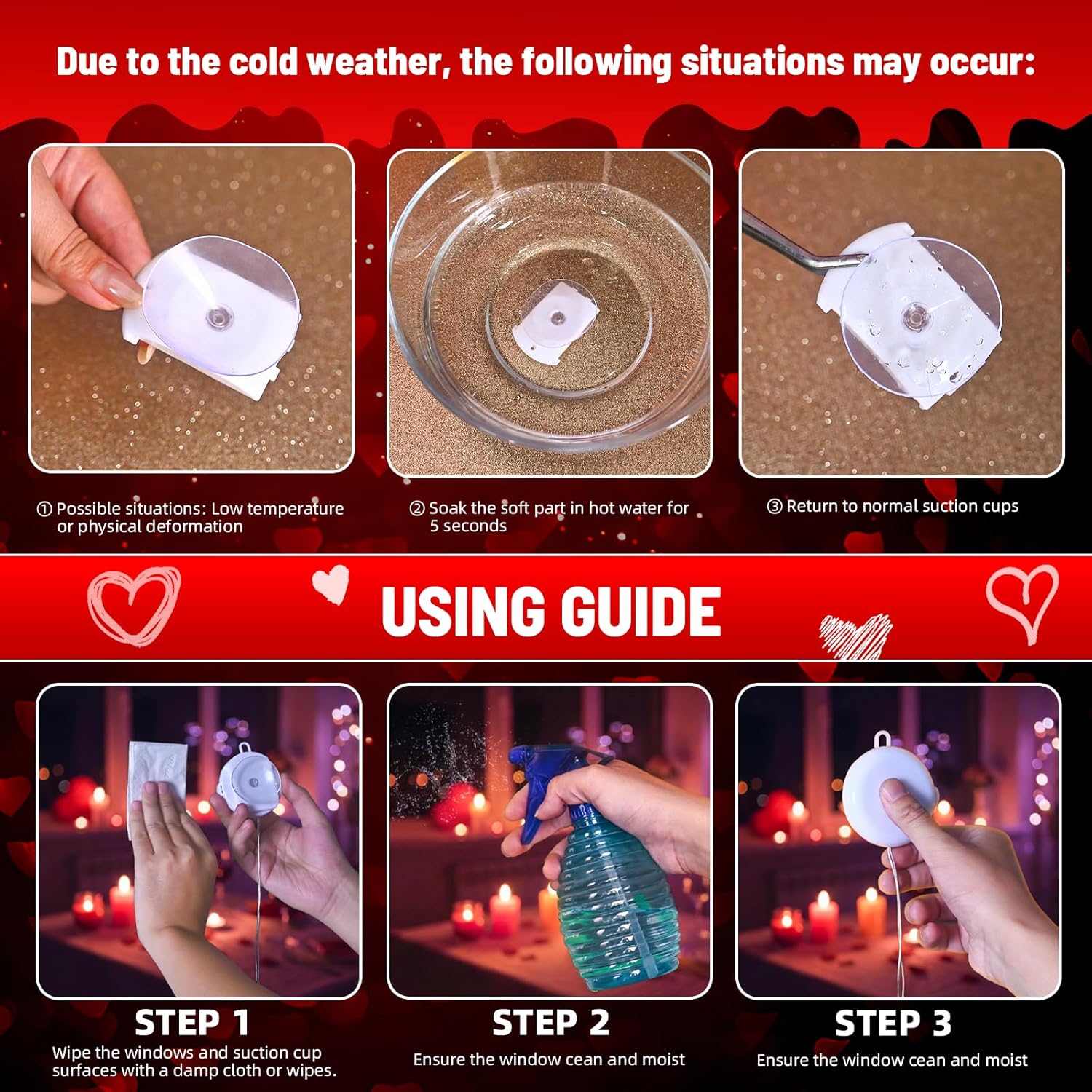 These Valentine heart window lights are designed to add a romantic and festive glow to indoor and covered outdoor spaces. Each heart-shaped silhouette features bright red LED lighting that creates a warm and inviting atmosphere for Valentine’s Day celebrations. With a clean hanging design and suction cup support, these lights can be displayed on windows, glass doors, cabinets, or smooth surfaces without causing damage.