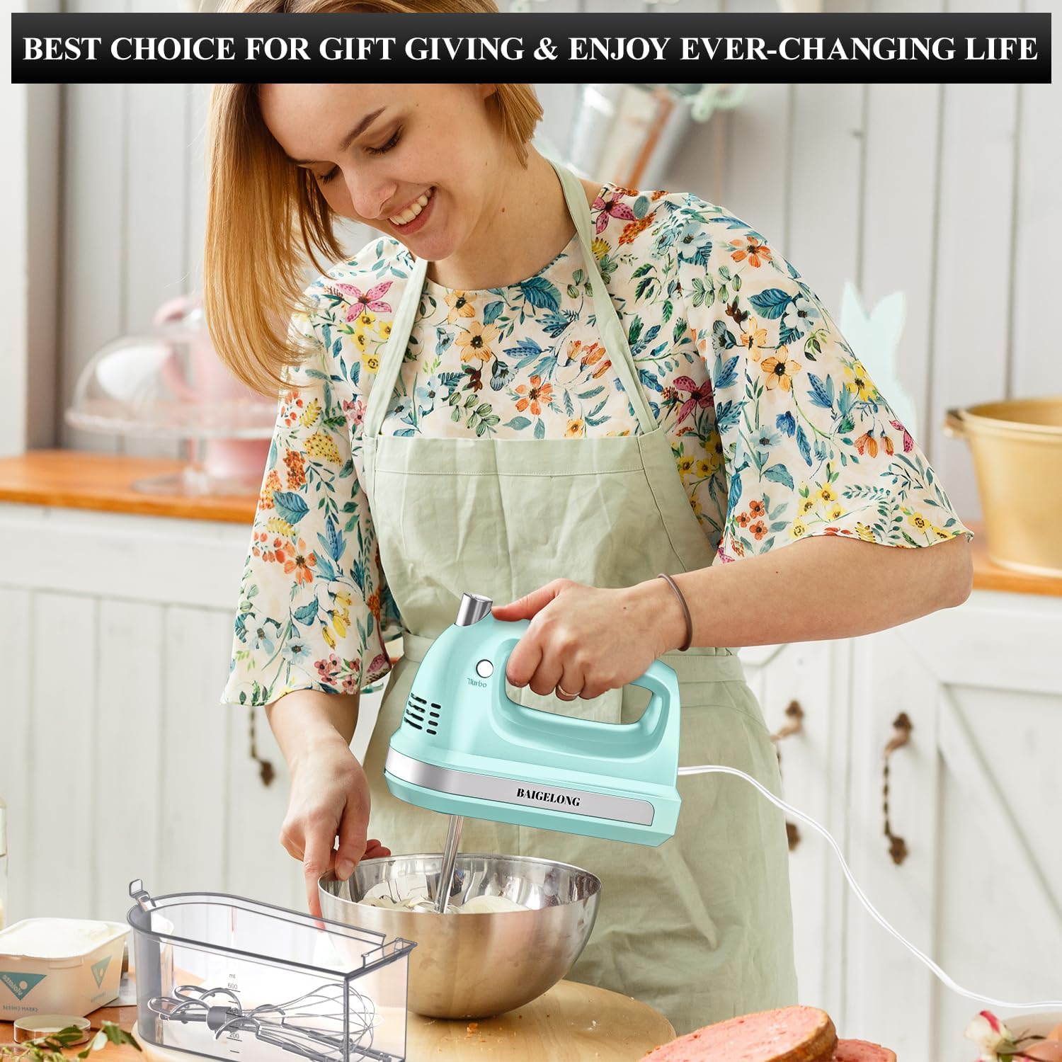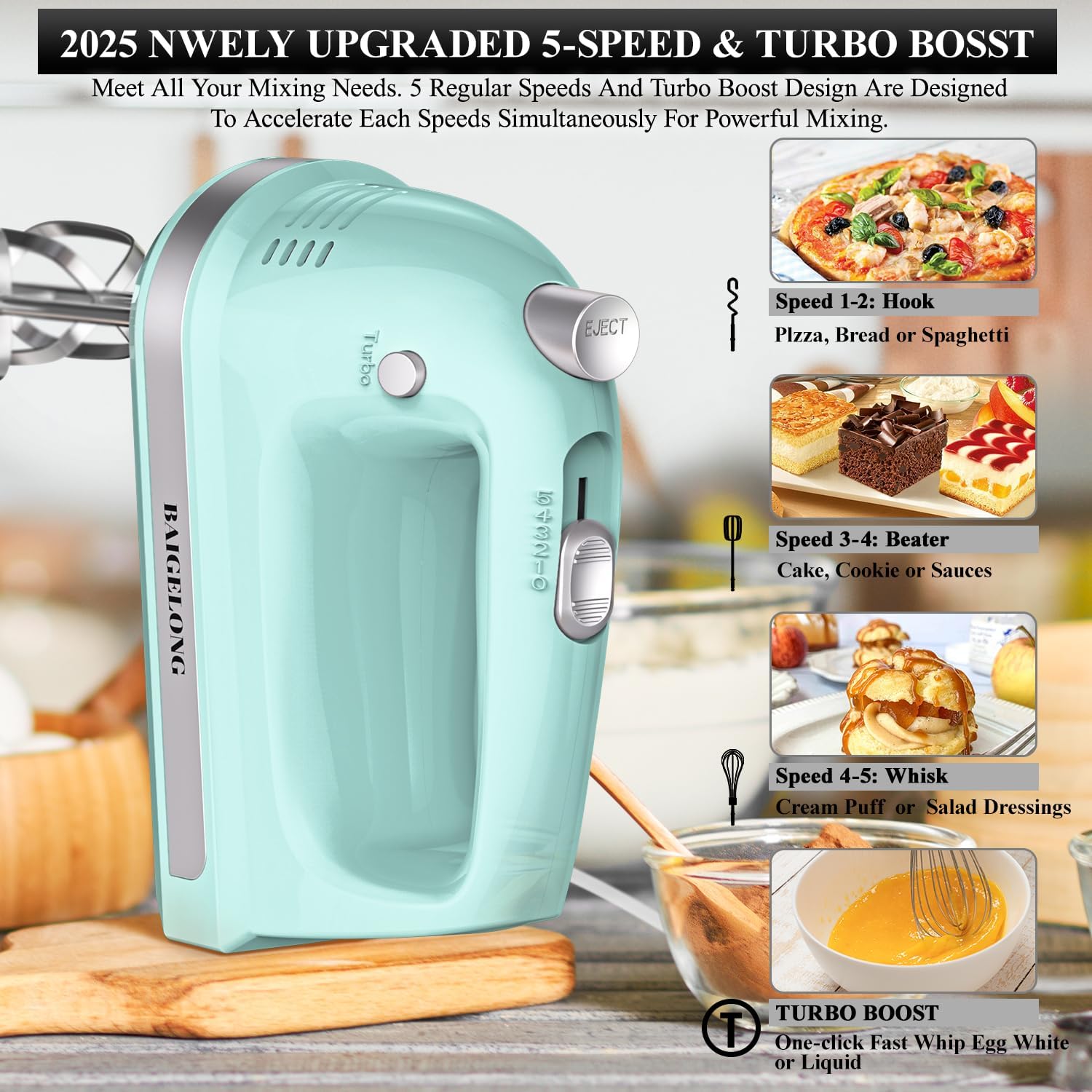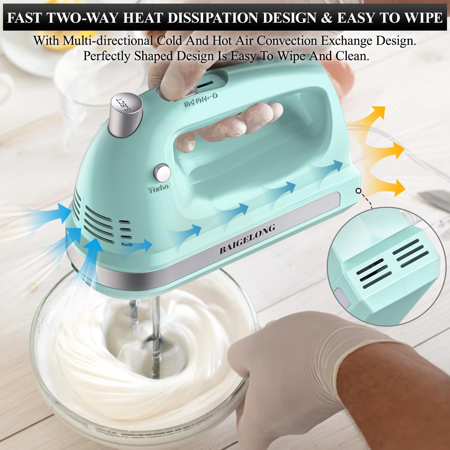 All-in-1 300W Multifunctional Mixer – Includes 1 whisk, 2 beaters, 2 dough hooks, and 1 snap-on storage box for versatile baking needs.
