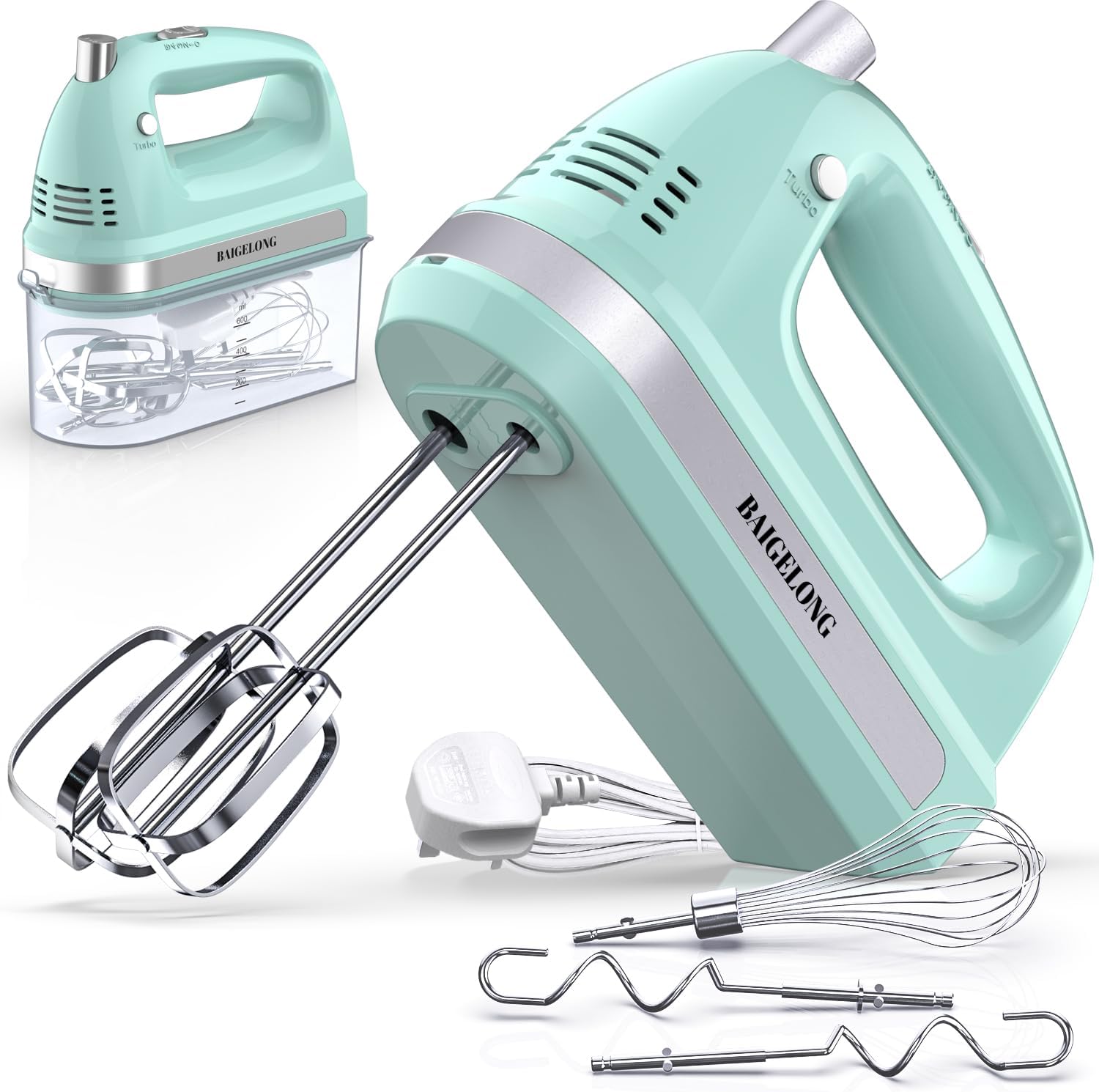 Our 300W Hand Electric Mixer is a powerful and versatile kitchen tool designed for baking enthusiasts and home cooks. Equipped with 5 self-control speed settings plus a turbo boost function, it handles a wide variety of mixing tasks with ease. The mixer includes 5 stainless steel attachments – two beaters, two dough hooks, and one whisk – allowing you to whisk, beat, and knead ingredients efficiently. Lightweight and ergonomic, it ensures comfort during prolonged use while delivering professional-level results in your kitchen. Perfect for cakes, cookies, bread dough, and more, this handheld mixer combines power, precision, and convenience in one compact device.