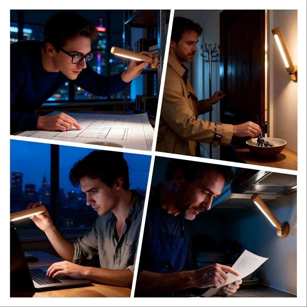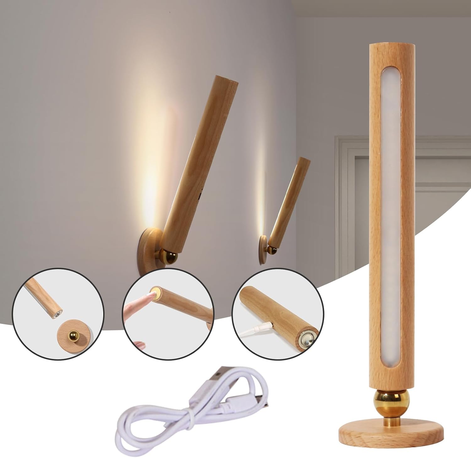 Our 360° rotatable wooden LED wall lamp provides versatile and modern lighting for bedrooms, hallways, and other indoor spaces. Featuring a sleek beech wood body with a magnetic, detachable head, this battery-operated lamp allows precise 360-degree rotation for adjustable illumination. The soft, eye-friendly LED delivers warm, sunset-like light ideal for bedside reading or ambient lighting. Equipped with a built-in 1000mAh rechargeable battery, it offers wireless convenience and lasting illumination. Easy peel-and-stick installation requires no drilling or wiring, making it perfect for flexible placement and a variety of home settings.
