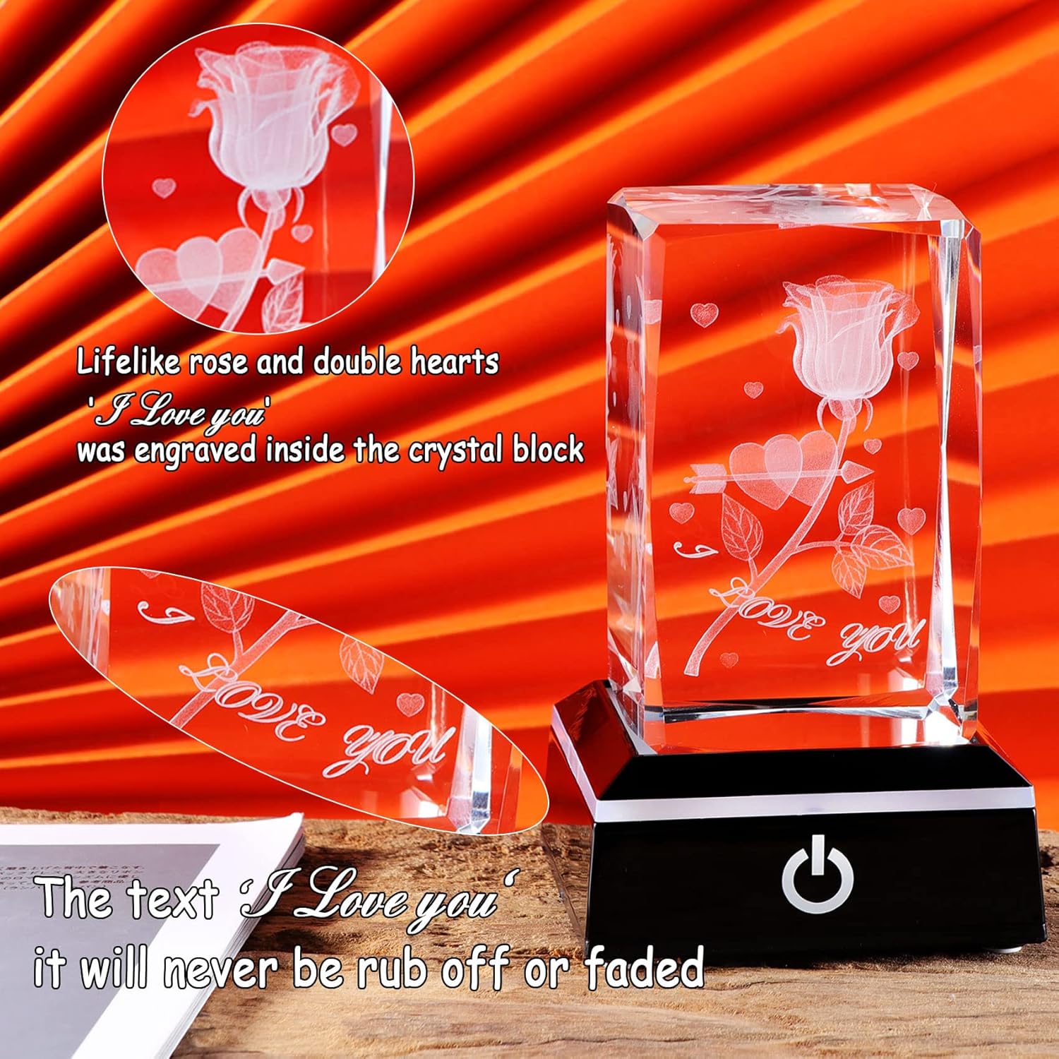 Celebrate love with this beautifully crafted 3D crystal rose keepsake, designed to capture heartfelt emotions in an elegant and timeless form. Made from premium crystal material, the cube features a finely detailed rose and romantic message engraved inside using advanced laser technology. The crystal’s clarity and precision create a stunning three-dimensional visual effect that symbolizes love, commitment, and affection.