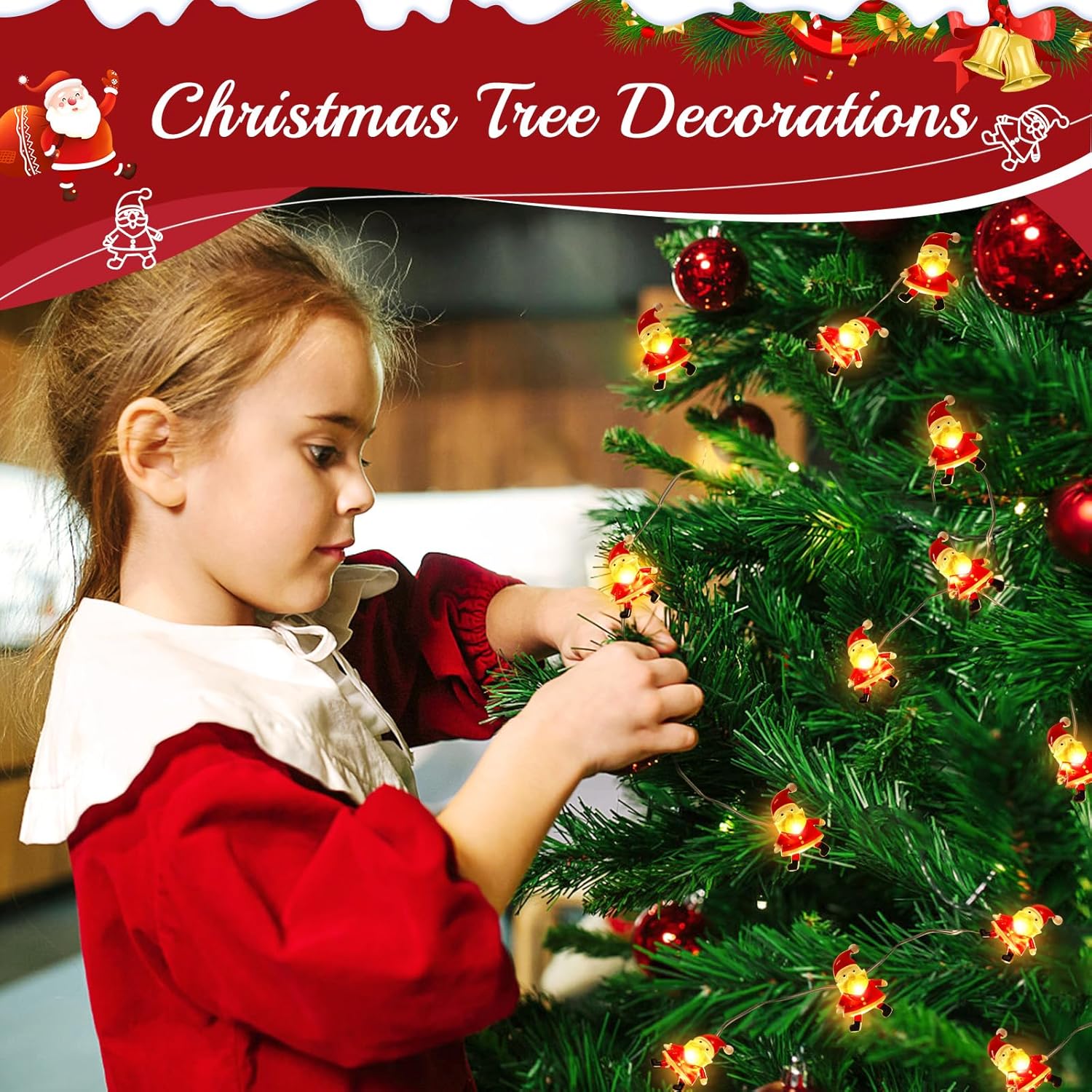 Adorable Santa Claus Design: 30 cute Santa-shaped LEDs add a fun and joyful Christmas touch.