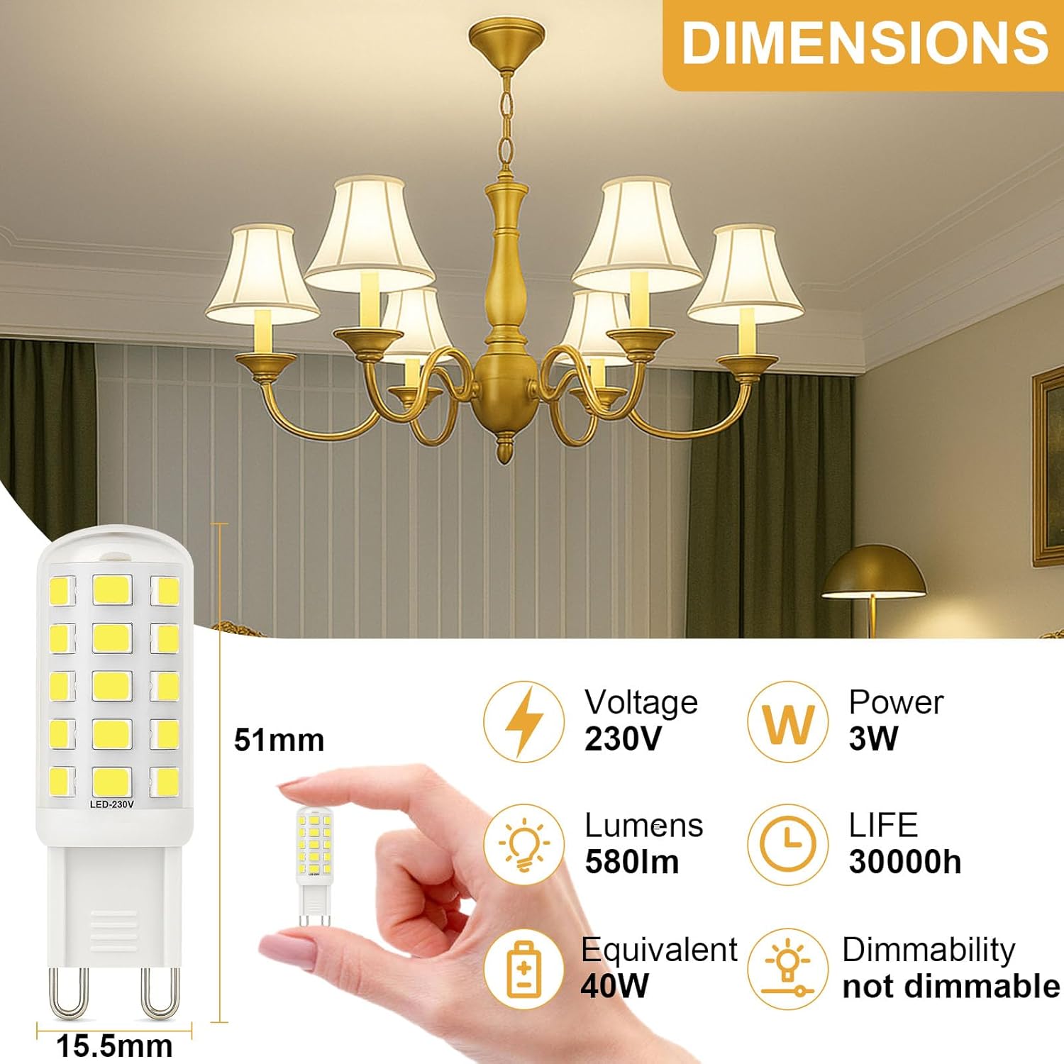 - Standard G9 bi-pin base for easy installation