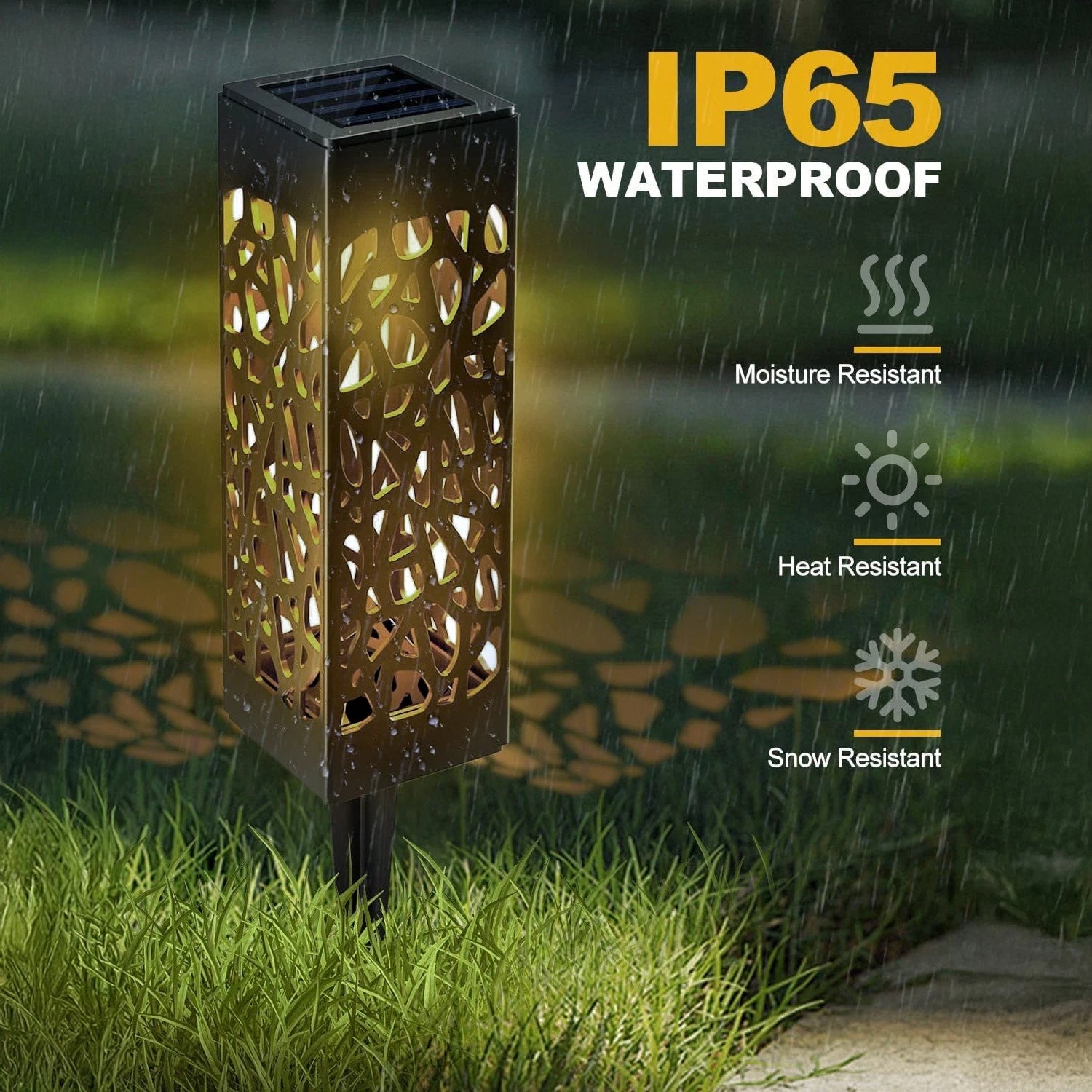 Illuminate your garden, walkway, patio, or lawn with this 4-pack of black solar pathway lights. Featuring energy-efficient LED technology, these outdoor lights automatically turn on at dusk and off at dawn, providing reliable and warm illumination throughout the night. Made from durable ABS material and designed with a polished finish, they are weather-resistant and waterproof (IP65 rated), making them ideal for all outdoor conditions. Easy to install in the ground, these solar lights enhance safety, accentuate landscaping, and create a welcoming ambiance. Perfect for homeowners looking for a low-maintenance, eco-friendly lighting solution that combines functionality with style.
