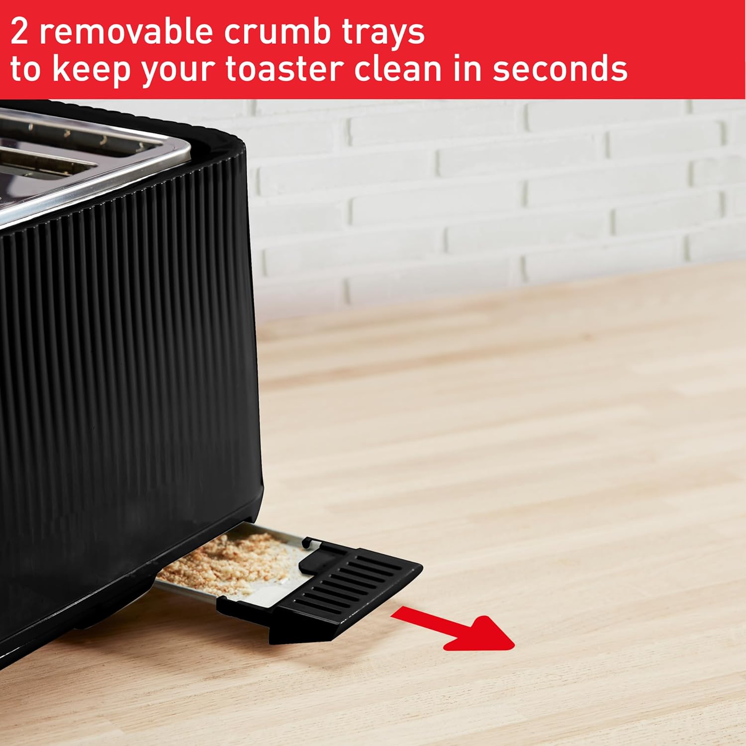 Removable Crumb Tray – Simplifies cleaning and keeps your kitchen surface mess-free.
