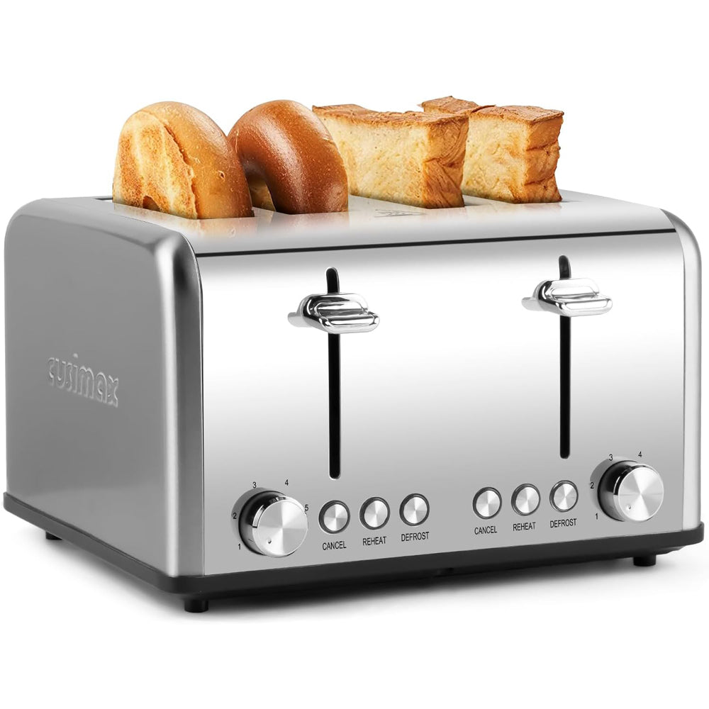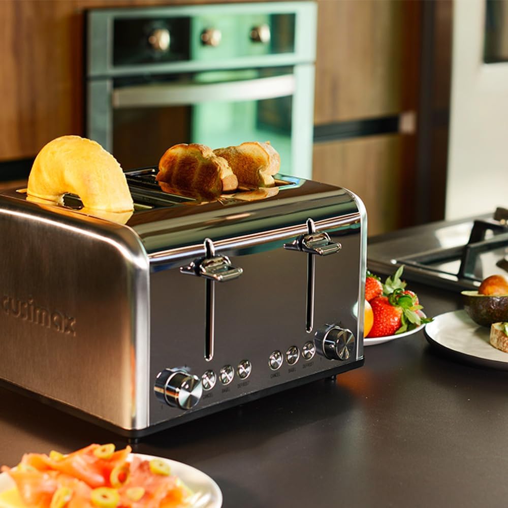4 Extra-Wide Slots – Fits thick-cut bread, crumpets, bagels, waffles, and artisan slices with ease.