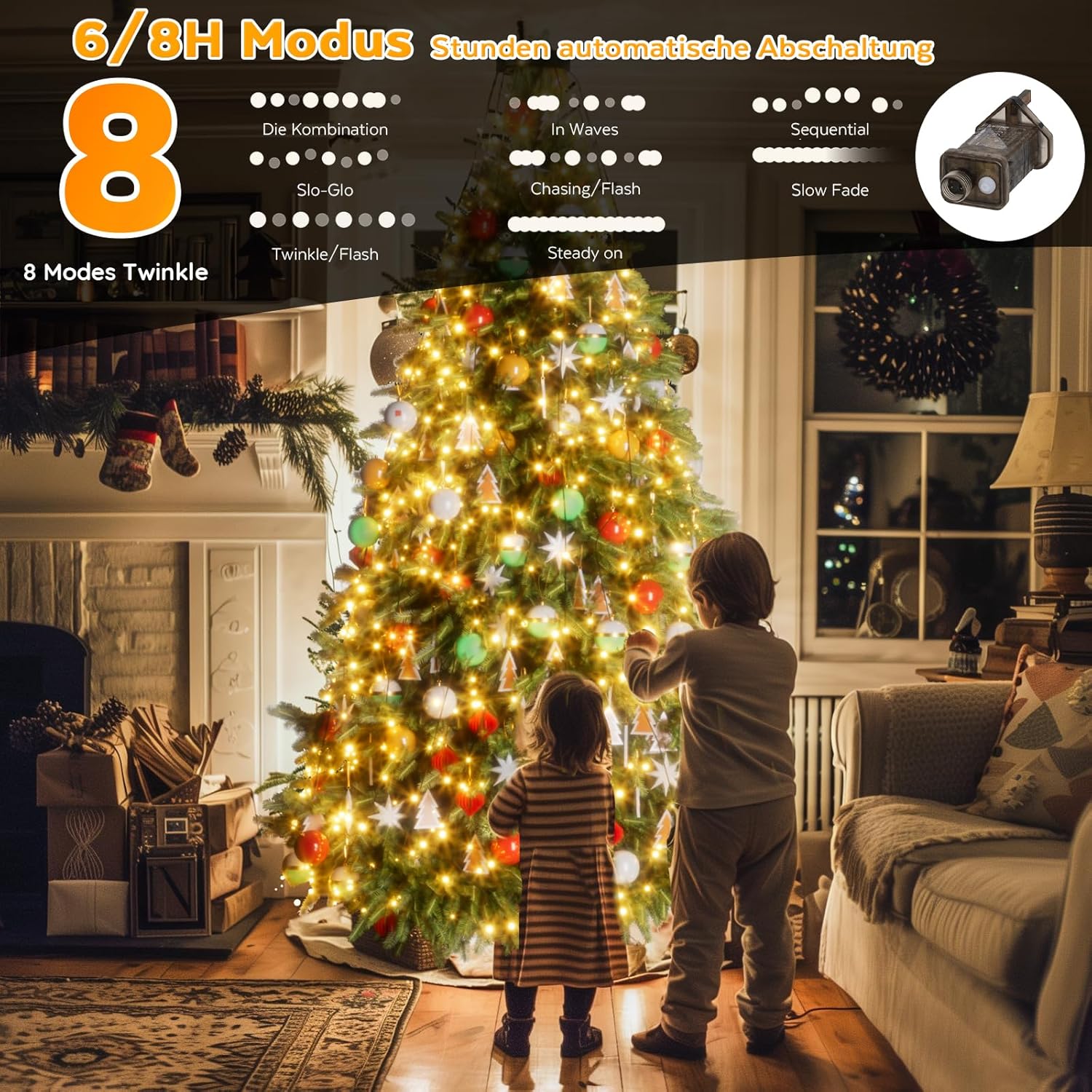 Our 400 LED Waterfall Christmas Tree Lights bring a dreamy, cascading effect to your holiday décor. Measuring 2.5m × 16 strands, these warm white LEDs drape elegantly over Christmas trees, creating a waterfall of sparkling lights that instantly becomes the focal point of any room or outdoor space. Designed with a 31V safe voltage plug, remote control, and memory function, these lights offer convenience, safety, and versatility. The built-in timer function allows 6 hours on and 18 hours off for effortless automation. With 8 lighting modes, including combination, waves, sequential, SLO-GLO, chasing/flash, slow/fade, twinkle/flash, and steady on, you can create dynamic or peaceful lighting effects. Waterproof and flexible, these lights are suitable for both indoor and outdoor use, ensuring a beautiful, festive atmosphere while keeping safety a priority. Perfect for decorating Christmas trees at home, offices, parties, or schools, and makes a wonderful Christmas gift for family and friends.