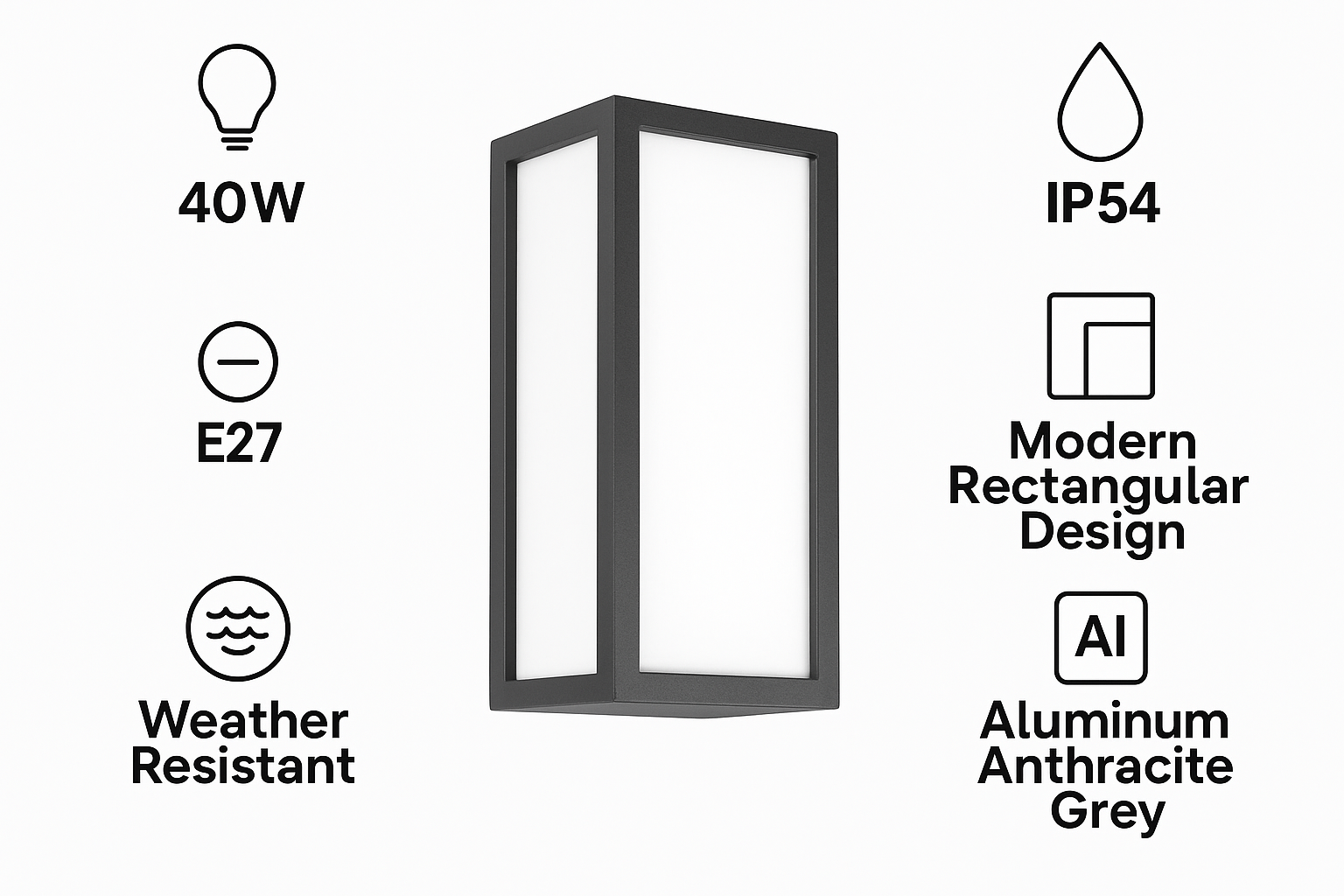 • 1 x 40W E27 Outdoor Wall Light
