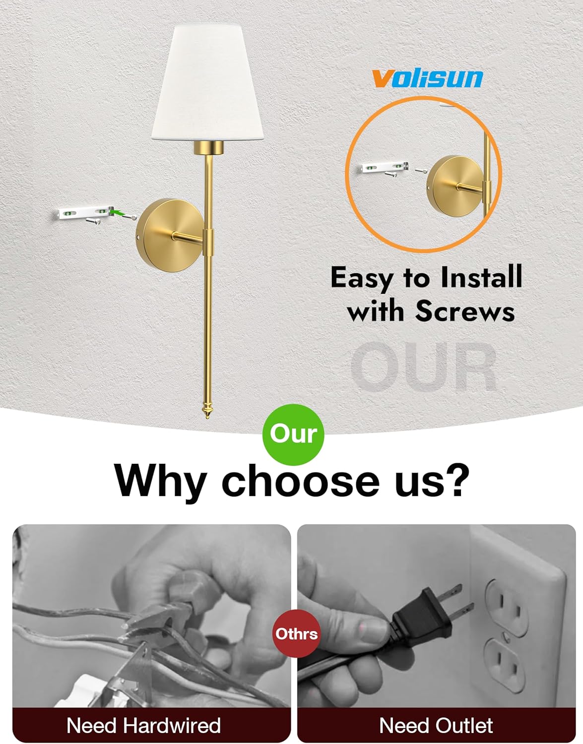 Our 5200mAh rechargeable wireless wall lights set of 2 provides flexible and stylish lighting for bedrooms, living rooms, and various indoor spaces. Featuring a polished gold metal frame with white fabric lampshades, these battery-operated sconces offer adjustable brightness from 20% to 100%, color temperatures from 3000K to 6500K, and 9 RGB colors for a fully customizable ambiance. Equipped with a remote control, timer, and memory function, the wall lights deliver up to 25 hours of illumination at full brightness and 72 hours at low brightness. Screw-mounted installation ensures secure placement while maintaining a modern minimalist aesthetic for any room.