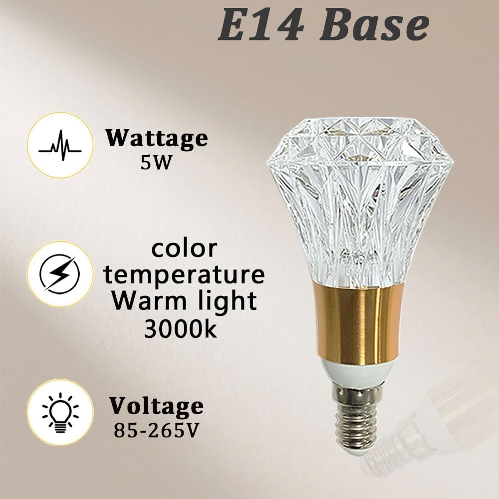 Our 5W E14 acrylic crystal LED bulb with 3000K warm light, wide 85–265V voltage range, decorative crystal glass design, and 450 lumen output is designed for elegant indoor decorative lighting where visual impact and efficiency are equally important. This professional decorative lamp uses a crystal imitation glass diffuser to create refined light refractions, while the metal Edison screw base ensures stable installation and long-term performance. Suitable for decorative and ambient indoor applications, it delivers warm illumination with reliable energy-efficient operation and a long service life.