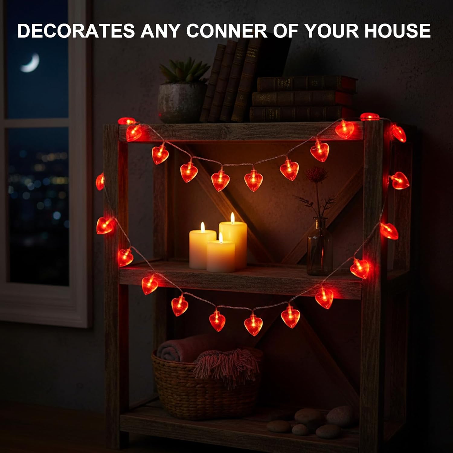 These red heart fairy lights are designed to create a warm, romantic, and inviting atmosphere for special moments and everyday décor. Featuring 40 red LED lights shaped into charming heart designs along a 6-metre string, they emit a soft glowing light that enhances bedrooms, living spaces, and celebration areas. Their romantic illumination makes them ideal for Valentine’s Day, anniversaries, weddings, and intimate evenings.