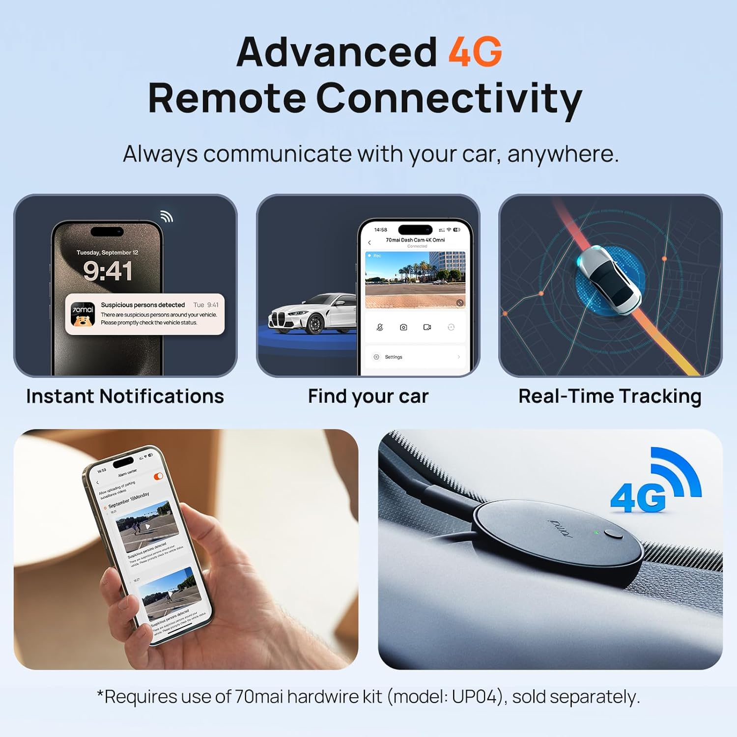 - 4G LTE and 5GHz WiFi 6 connectivity for remote monitoring via 70mai App