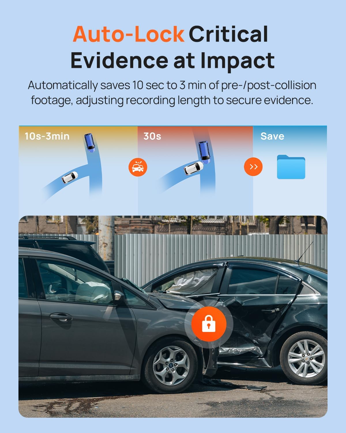 2.5K front and 1080P rear dual dash camera for ultra-clear footage