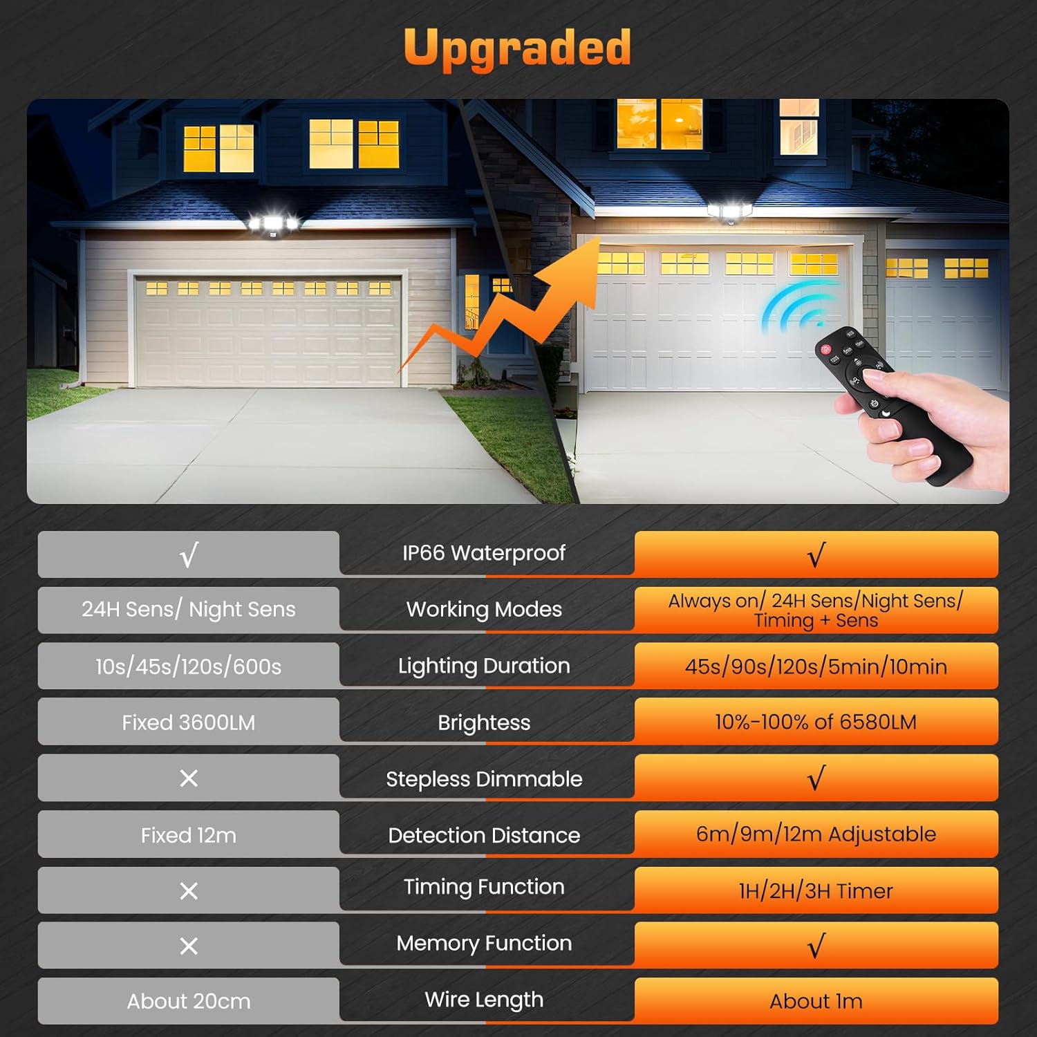 IP66 waterproof for the light, IP65 for the sensor—works in all weather conditions