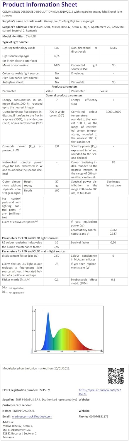 - Energy-saving 7W LED with 60W incandescent equivalent