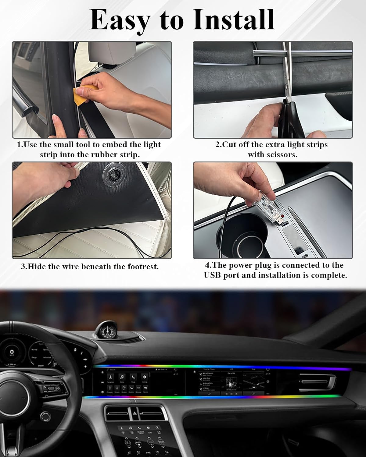 Ultra-thin strip design blends seamlessly into your car interior for a modern look.
