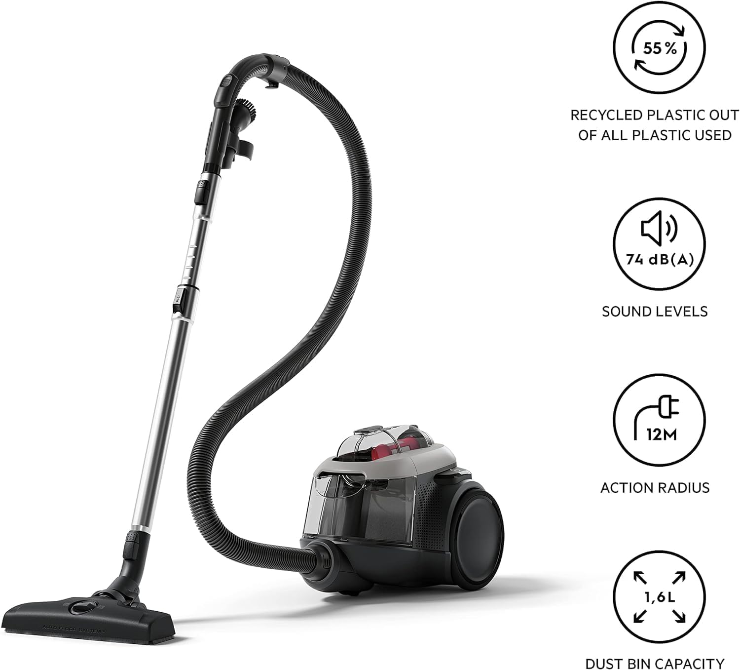Cyclonic Technology: Maintains up to 99% of initial cleaning performance even as the dust bin fills up.
