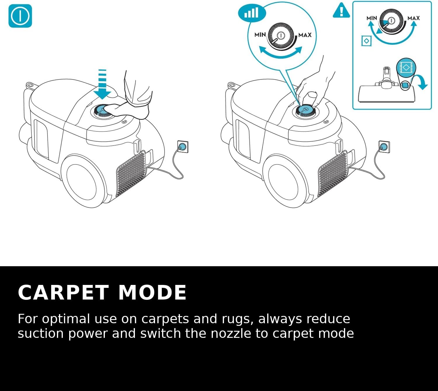 Powerful Suction: Strong suction with AllFloor nozzle ensures deep cleaning on carpets and hard floors.